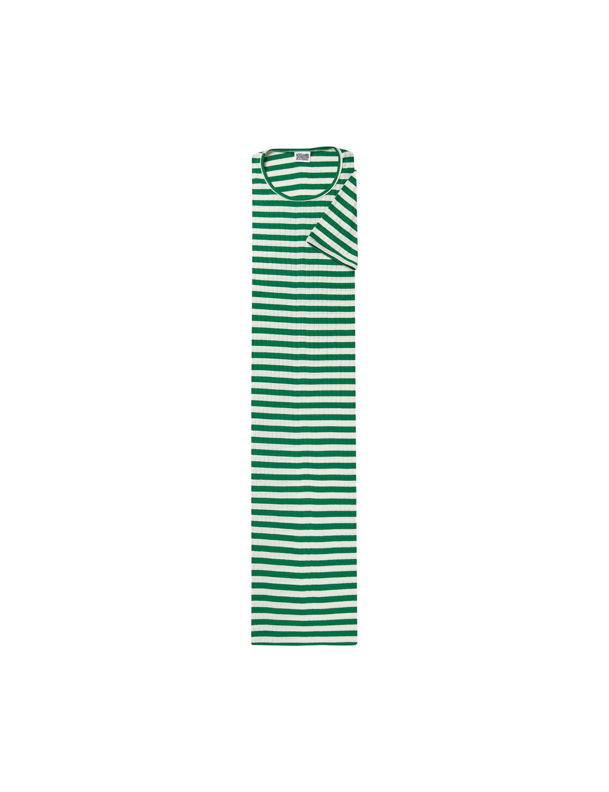 NPS John Dress Short Sleeve Broadway er den klassiske #101 T-shirt designet som knælang kjole. Nørgaard Paa Strøget John kjolen er en videreudvikling af den klassiske #101 T-shirt designet af Jørgen Nørgaard I 1967. Kjolen er designet i 70’erne og er strikket og syet i Danmark af 100% bci bomuld. John kjolen er onesize og har korte ærmer.