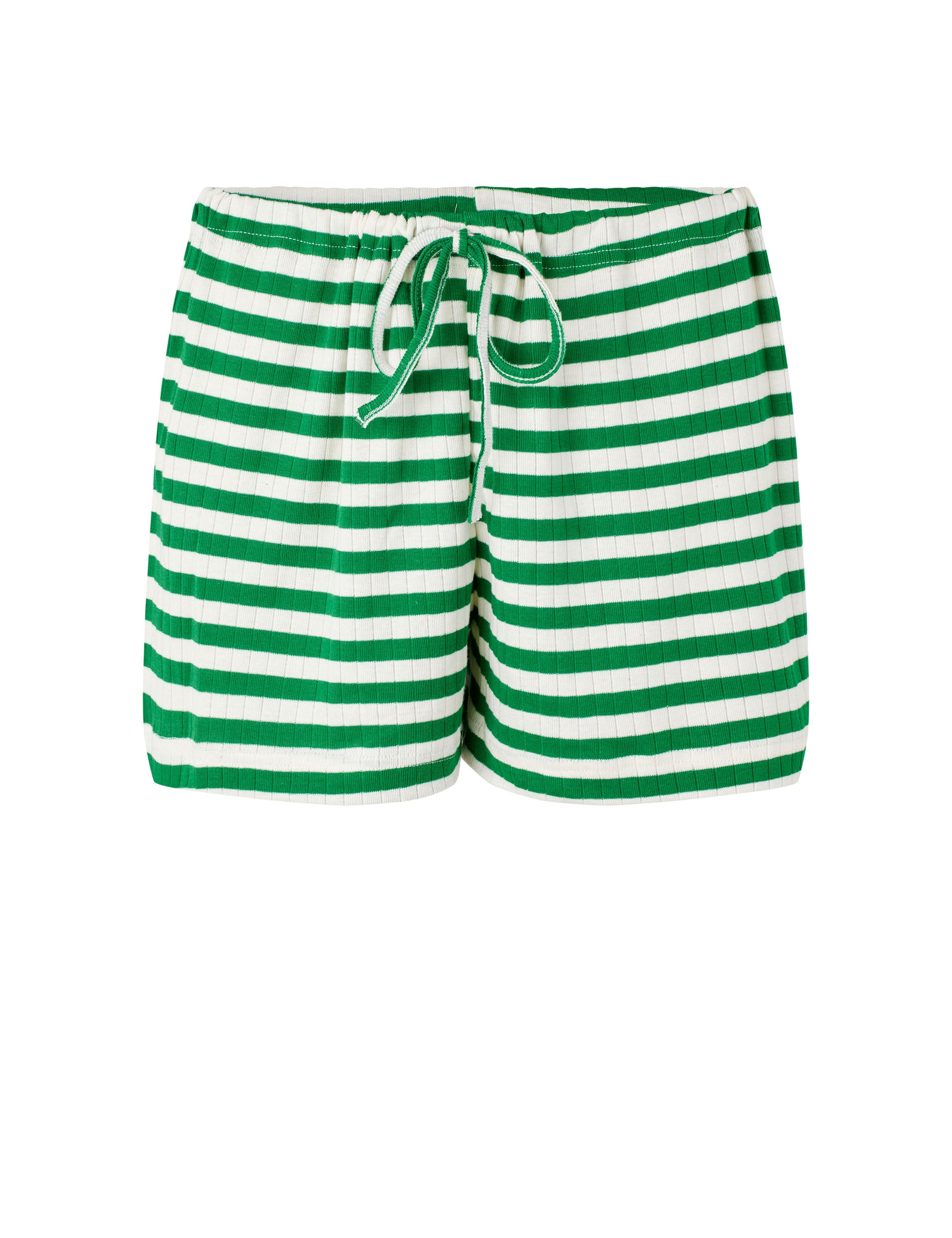 NPS Nova Shorts Broadway Colour er et par shorts uden sidesøm, med en løs pasform og snørelukning. Shortsene er syet på vores systue i Korsør og stoffet bliver strikket i Ikast af 100% BCI bomuld. NPS Nova Shorts ‘Broadway’ er one size, men kan fås i to forskellige længder. Størrelse 2 er ca. 30 cm længere end størrelse 1.