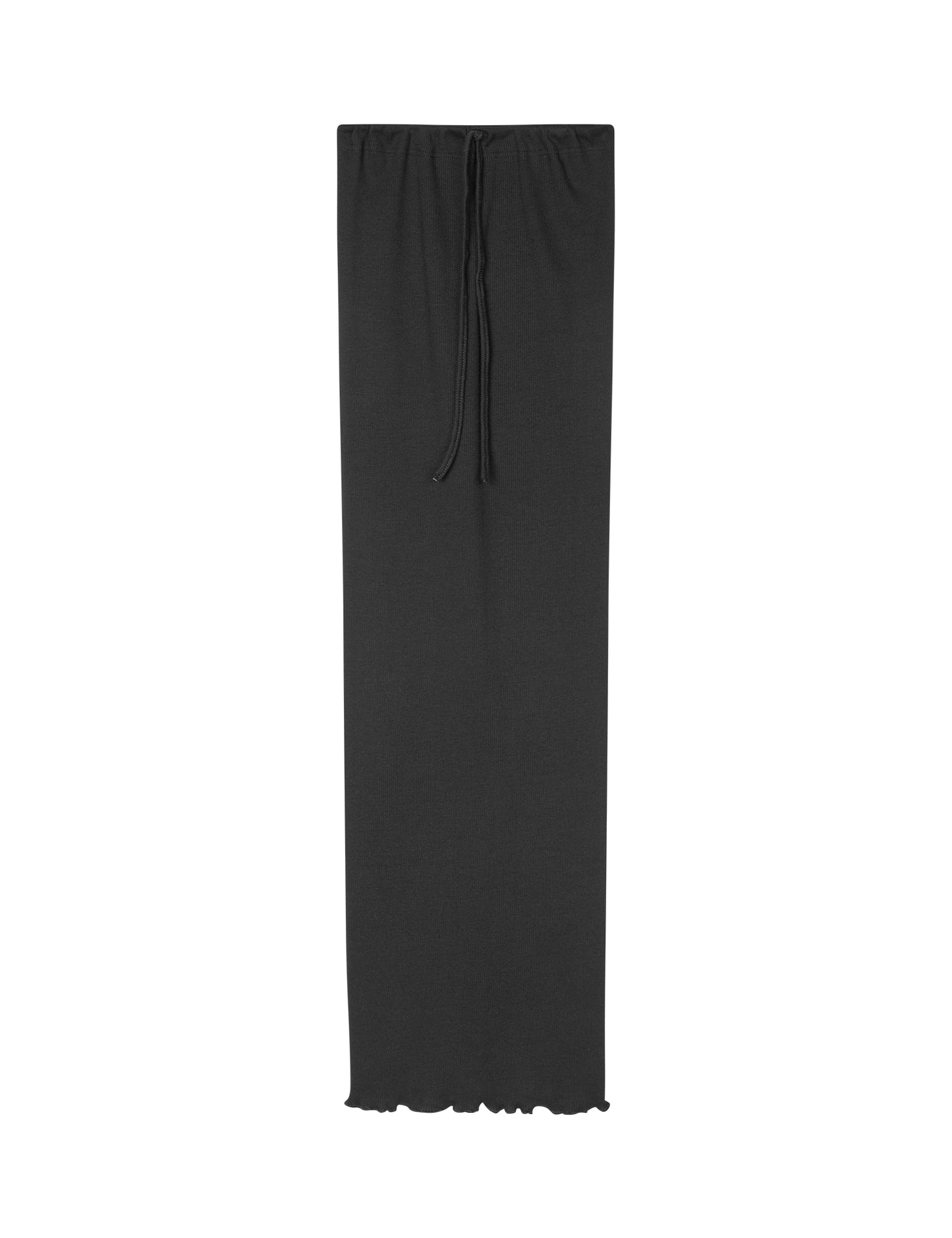 NPS Skirt Solid Colour er en ensfarvet nederdel med rib og træksnor i livet. Nederdelen er onesize og har en smal pasform.