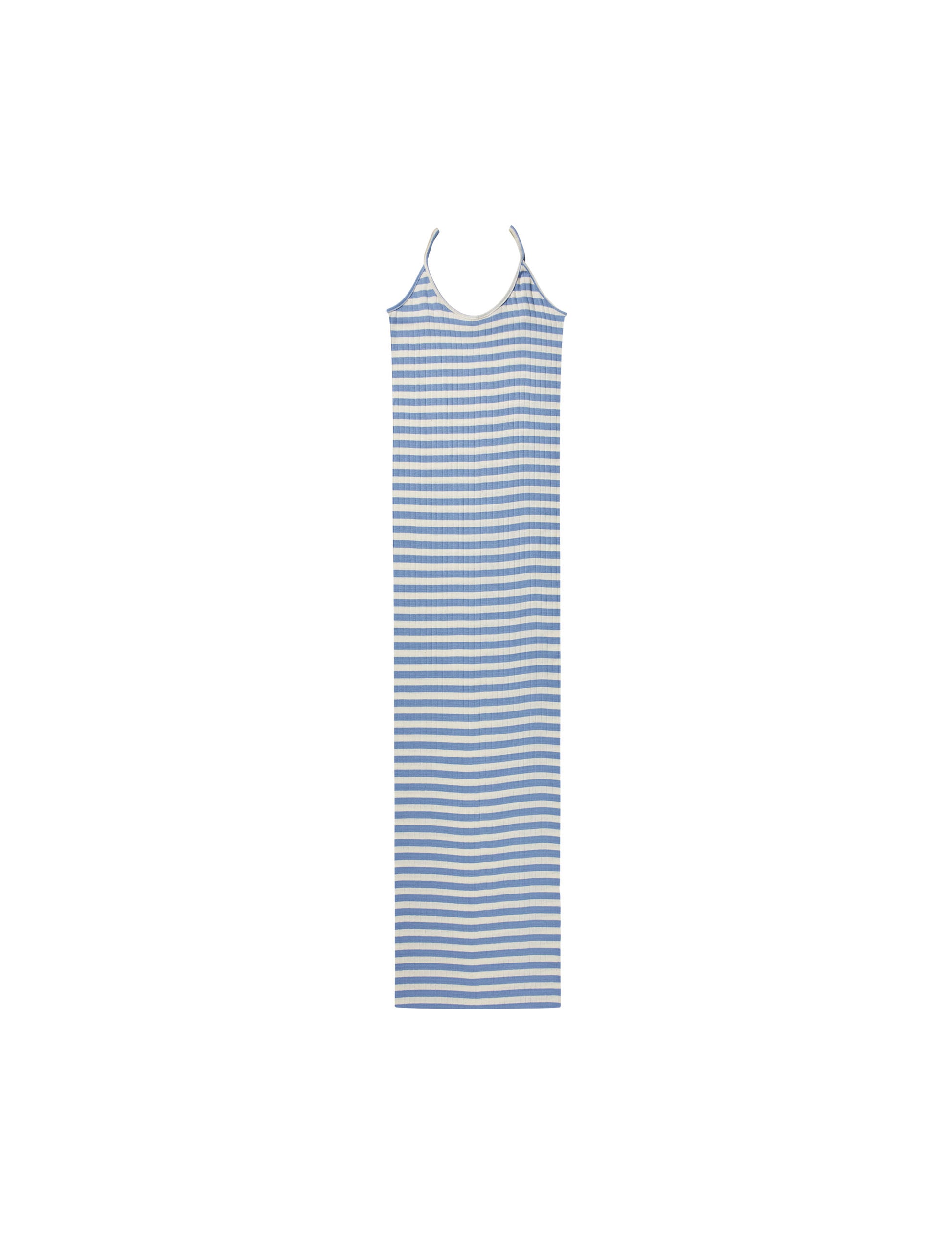 NPS Strap Dress Broadway er den klassiske #101 t-shirt designet som ankellang kjole med tynde skulder stropper. Nørgaard paa strøget strop (slip) kjolen er en videreudvikling af den klassiske #101 t-shirt designet af Jørgen Nørgaard i 1967. Kjolen er designet i 90’erne og er strikket og syet i Danmark af 100% bomuld. Strop (slip) kjolen er onesize.