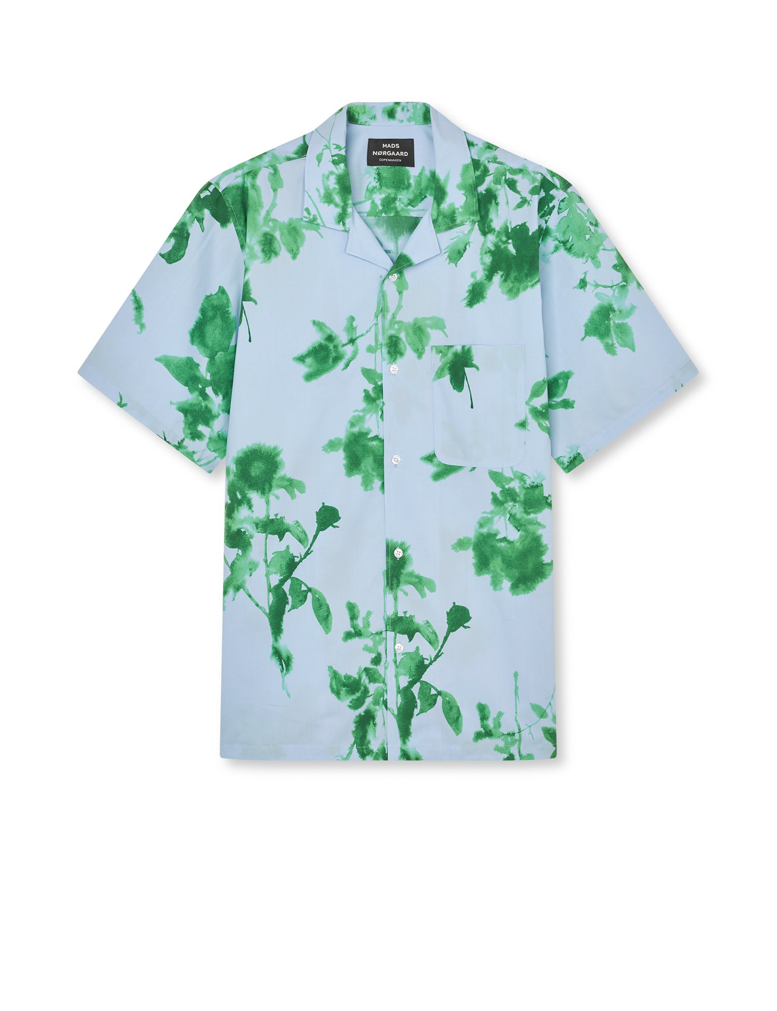 Prime Cotton Poplin Kenji AOP er af blød bomuld, som er vævet sommersprødt og glat. Pasformen er afslappet, ærmerne er korte, knapperne er næsten usynlige, og kraven er cubansk.