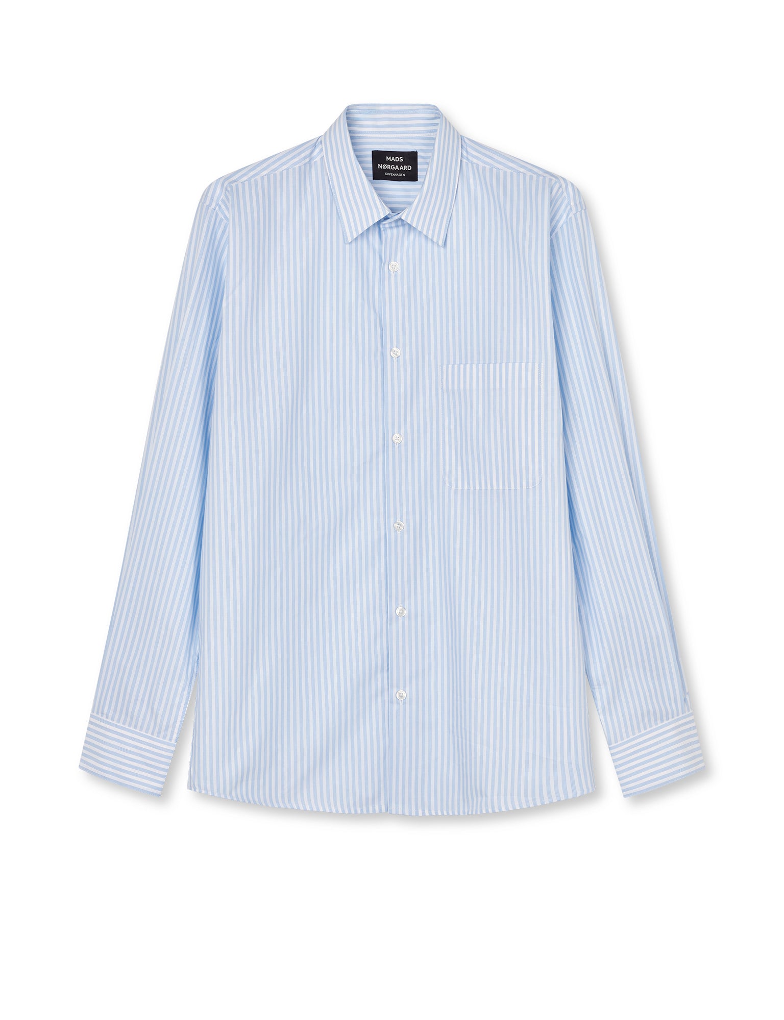 Prime Cotton Poplin Sune er en skjorte lavet i en fin, blød og crisp bomuld. Pasformen er regular, forholdsvis lige op og ned og med små knapper, smalle striber og en button-down krave.
