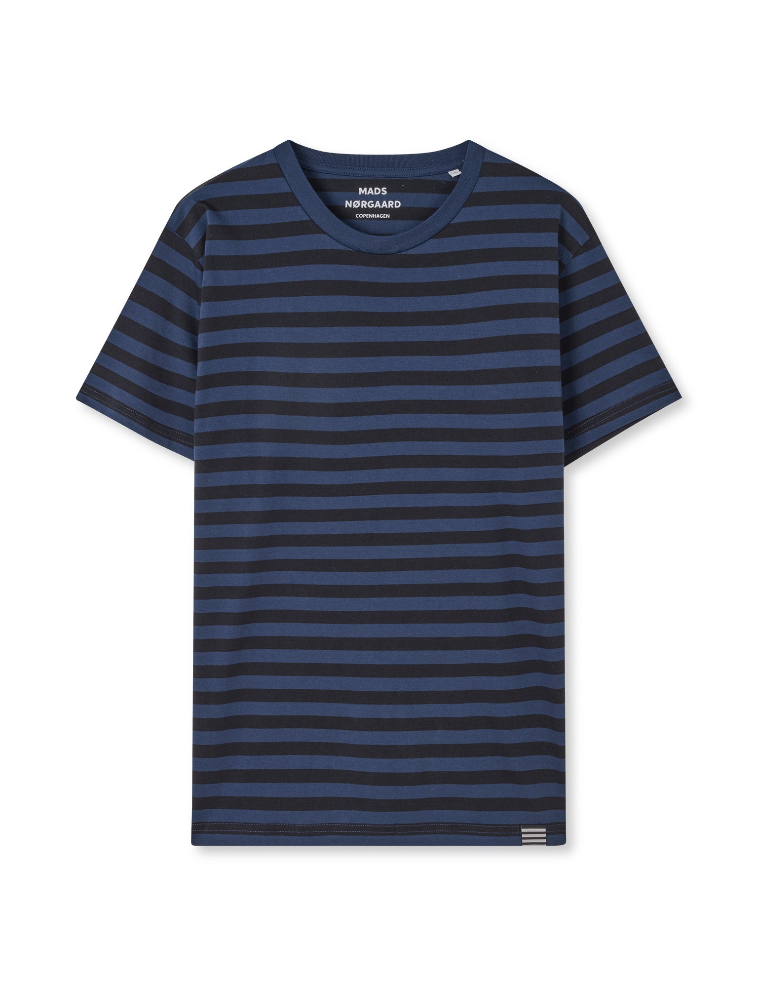 Vores T-shirt Fine Jersey Midi Thor Tee er lavet af blød og let bomuld. Pasformen er regular, lige op og ned, halsen er rund, ærmet er kort, og striberne er brede.