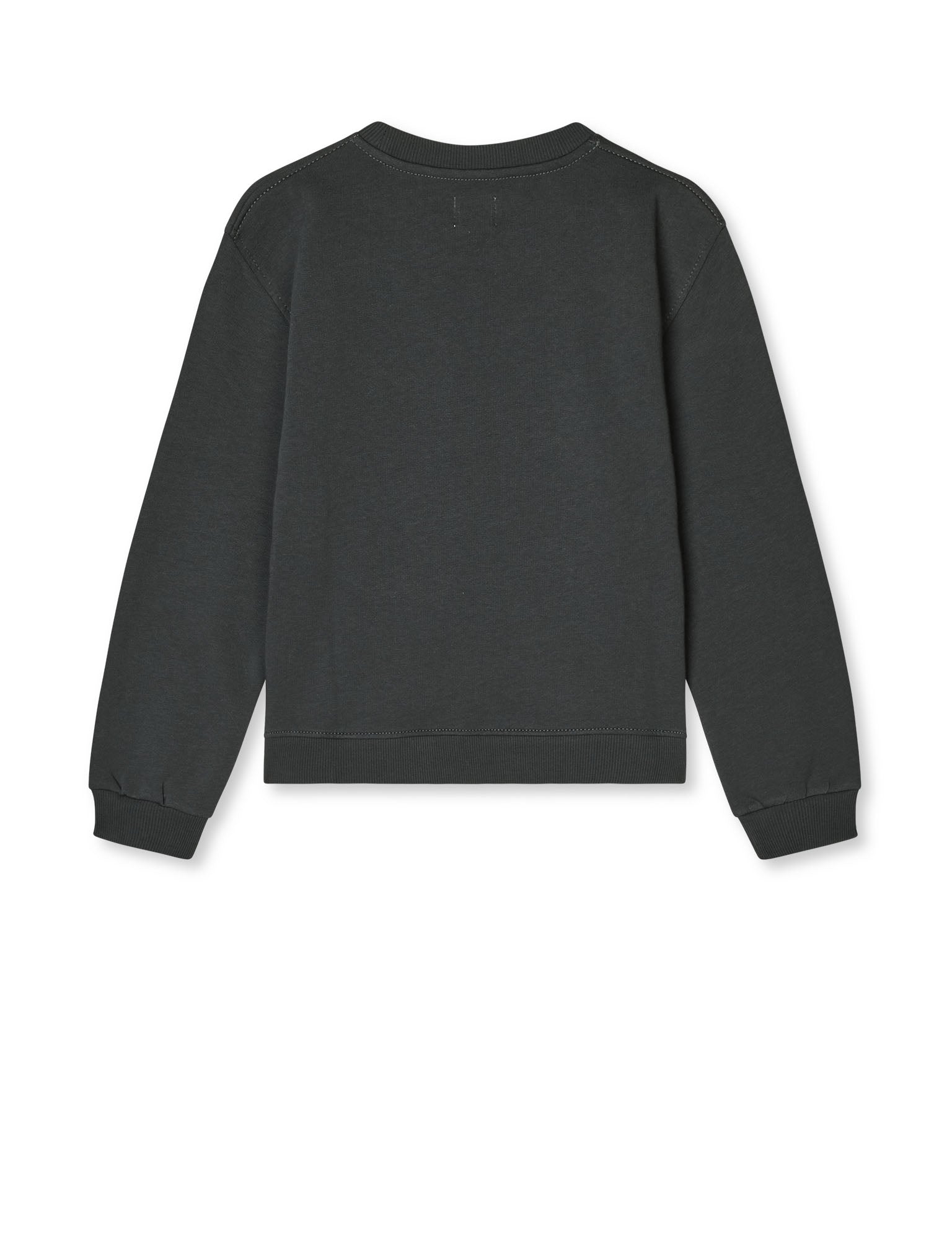 Blød og boxy sweatshirt med crewneck, ribkanter og stort, delvist spejlvendt logoprint på brystet.