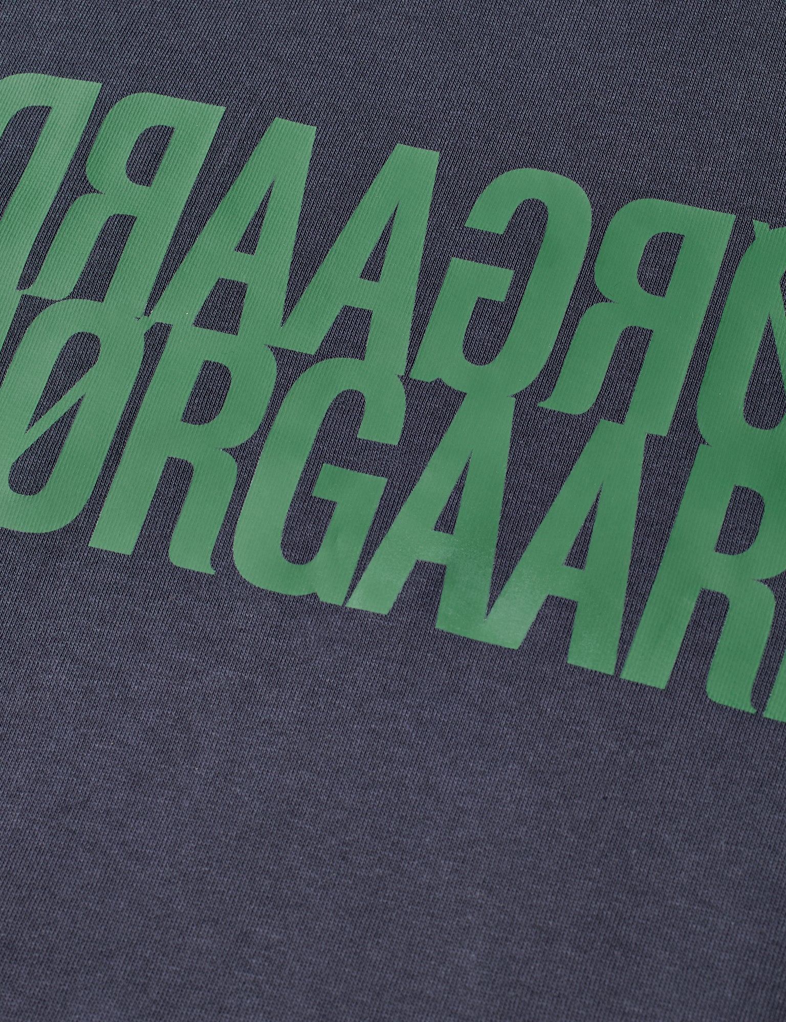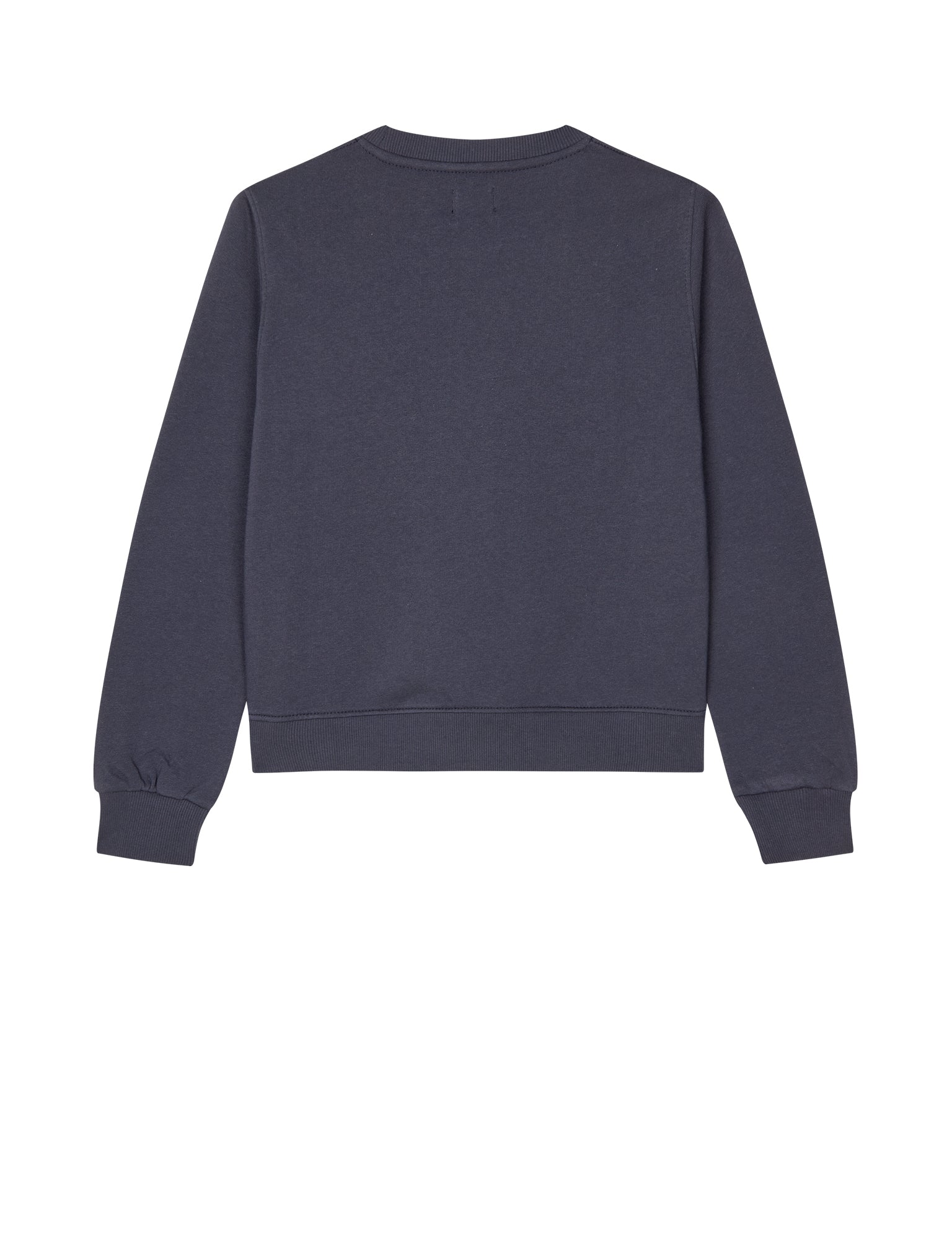 Blød og boxy sweatshirt med crewneck, ribkanter og stort, delvist spejlvendt logoprint på brystet.
