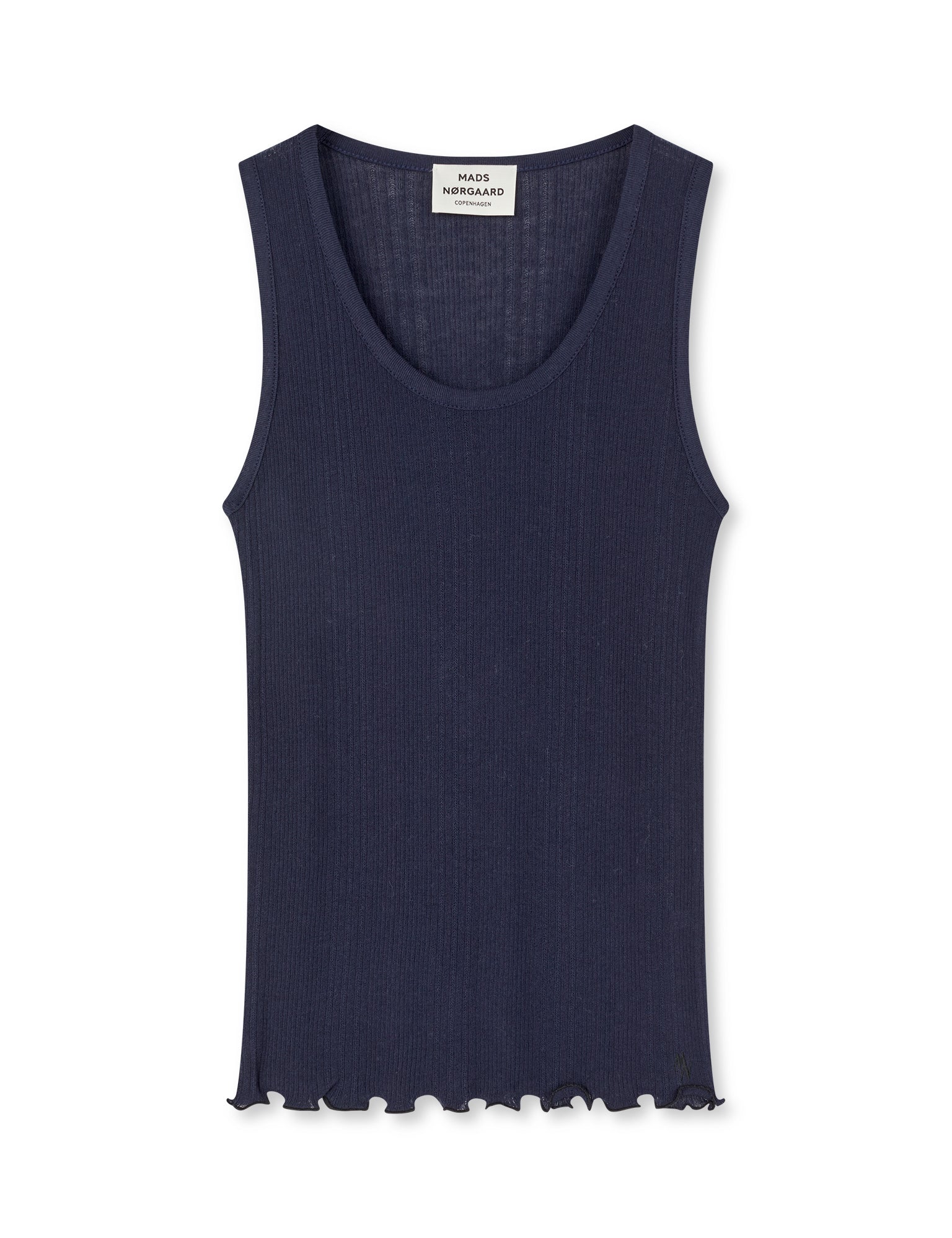 Tætsiddende og stretchy undertrøjetop med dyb oval hals og krøllet kant forneden.