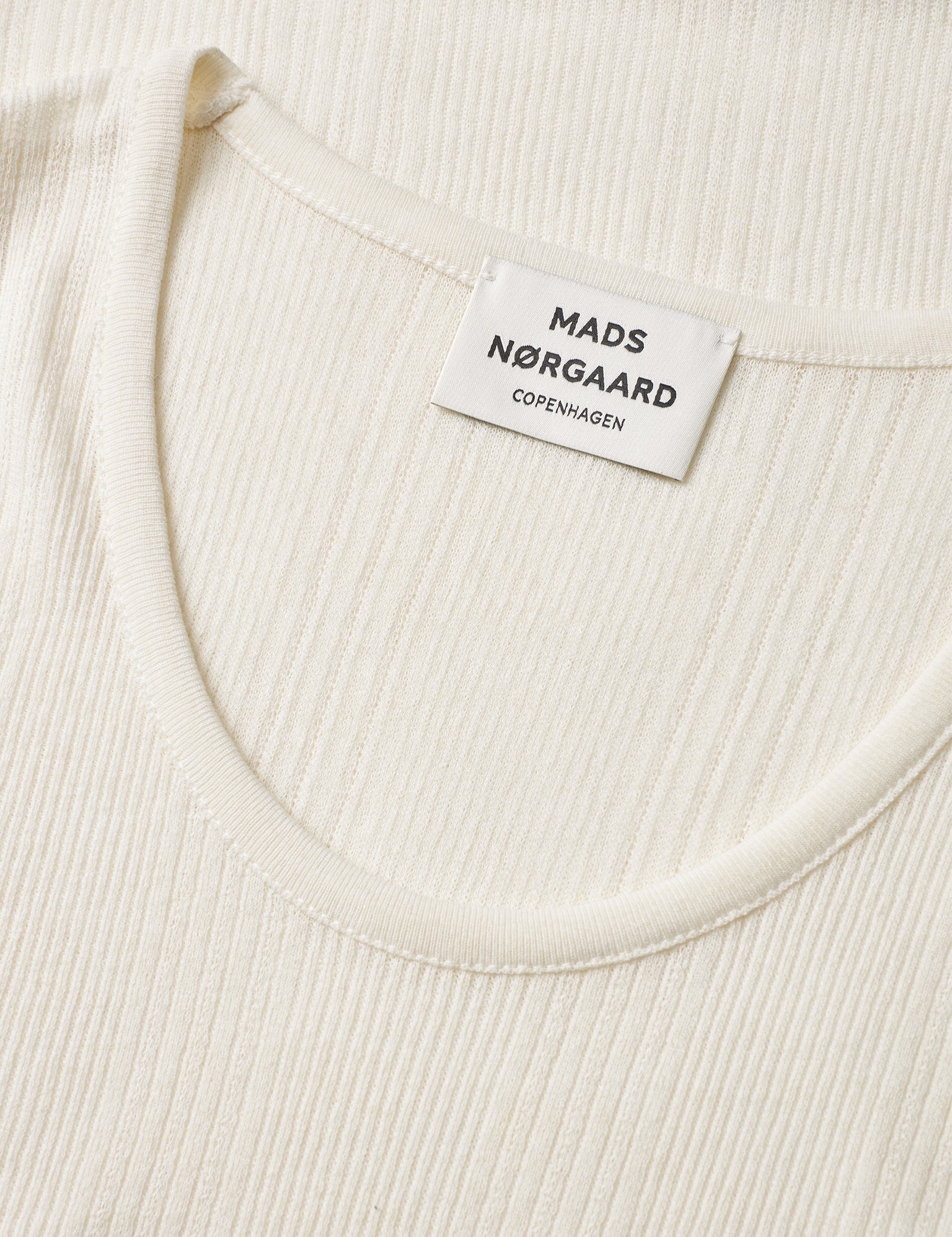 Tætsiddende og stretchy undertrøjetop med dyb oval hals og krøllet kant forneden.