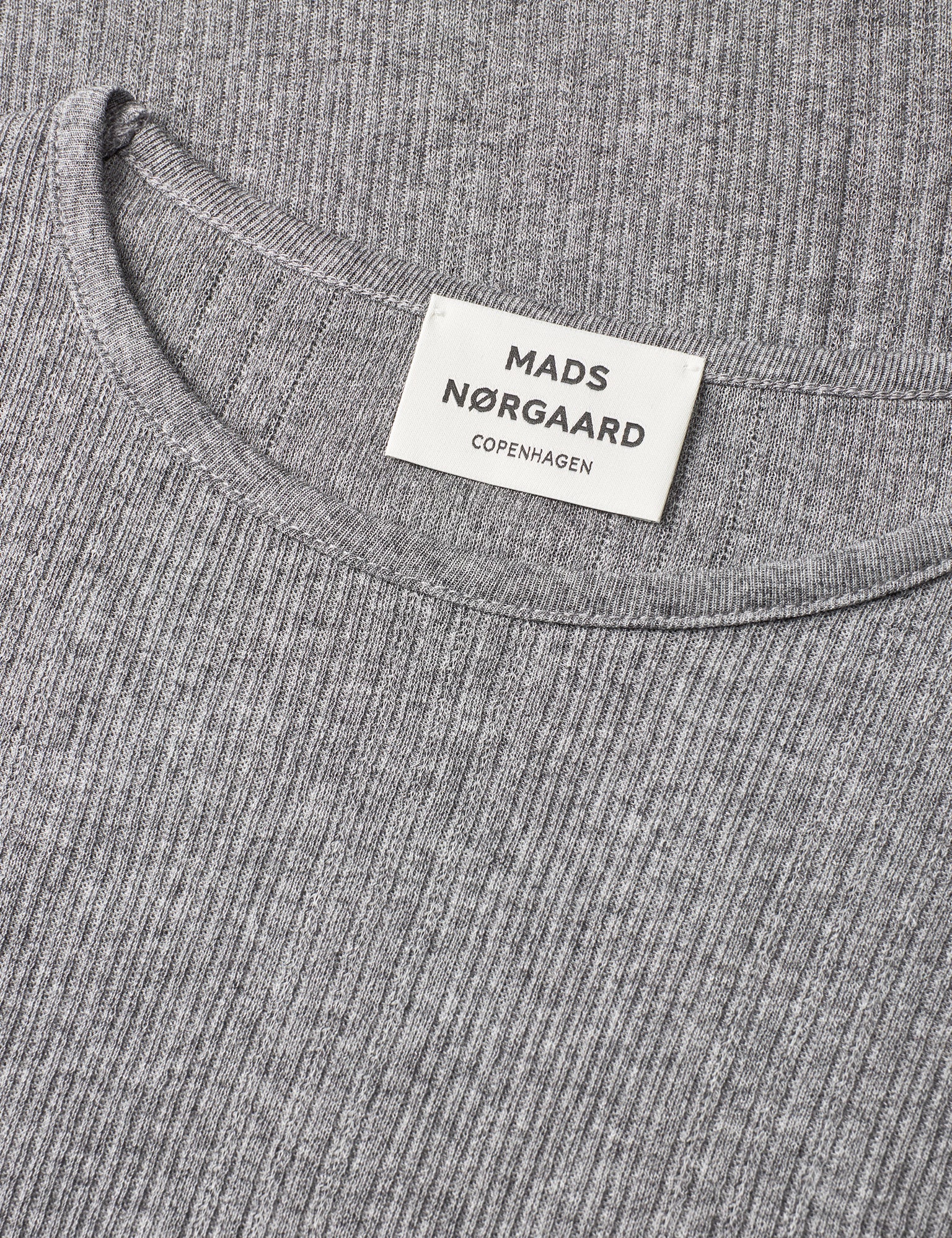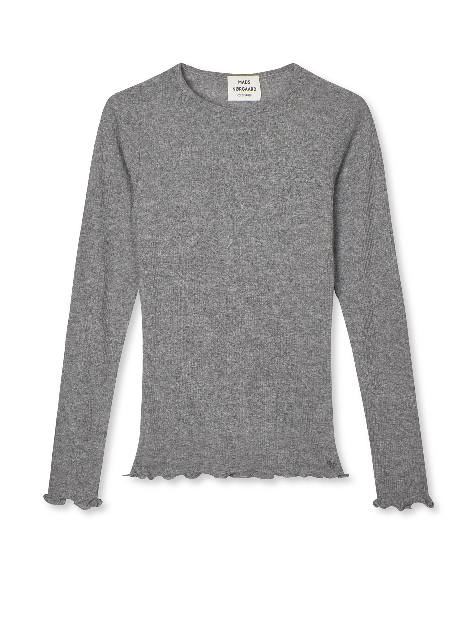 Tætsiddende og stretchy T-shirt med rund hals, lange ærmer og krøllede kanter.