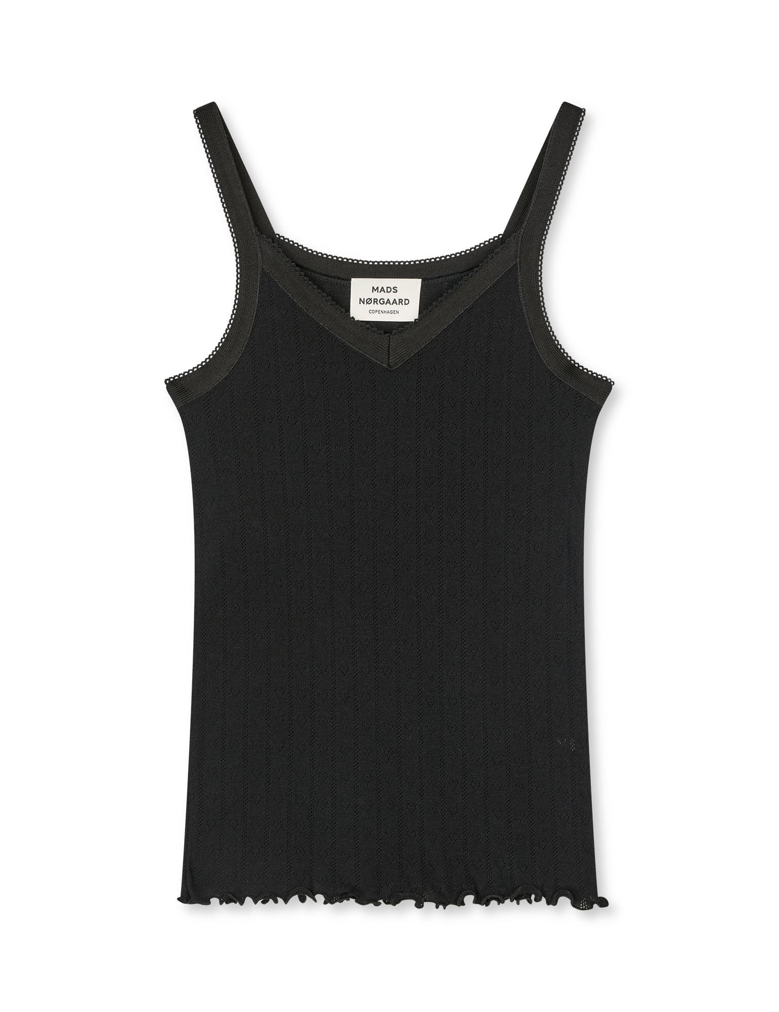 Tætsiddende og stretchy top med tynde stroppe i blød og let jersey med V-udskæring og nålestiksmønster.