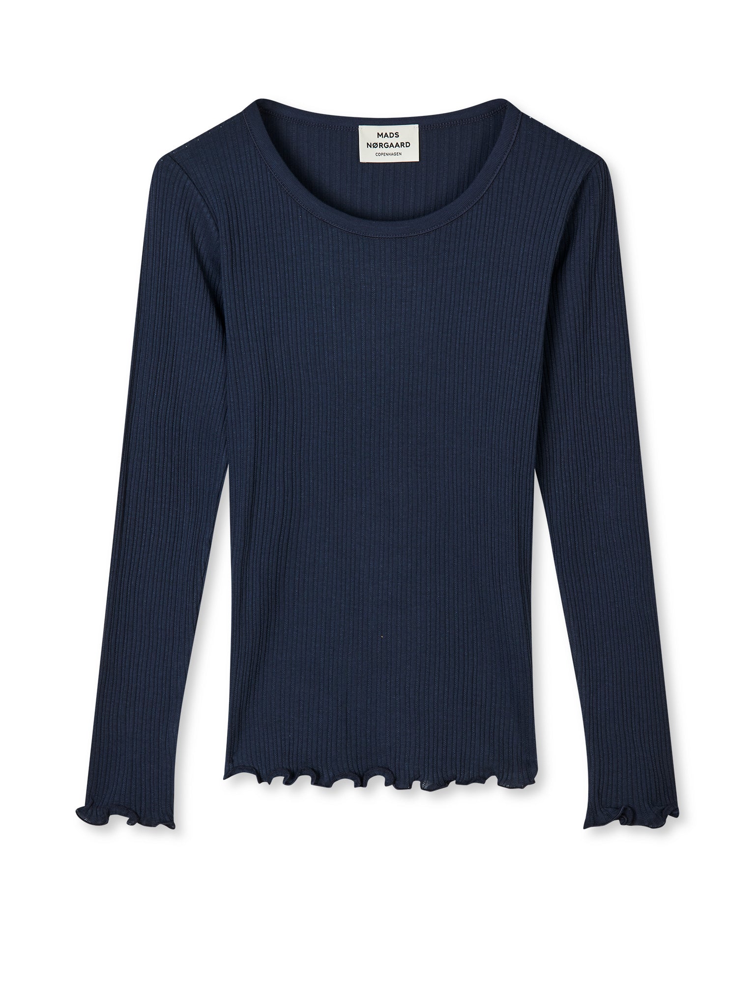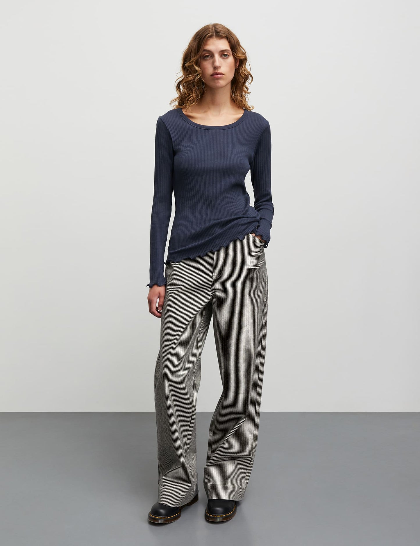 Den langærmede T-shirt Pointella Troja er tætsiddende, af stretchy, ribstrikket jersey og med krøllede kanter, rund hals og nålstiksmønster.
