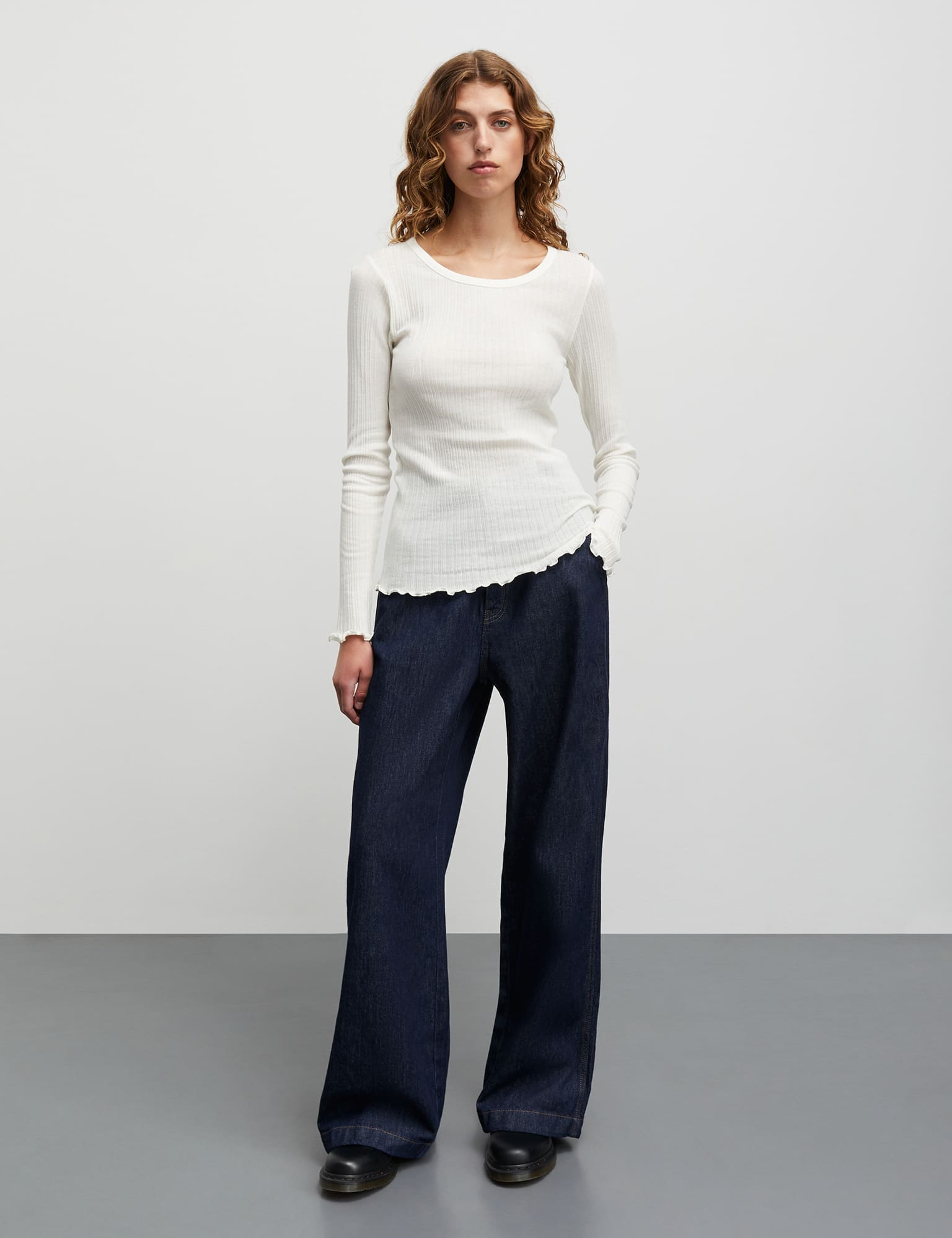 Den langærmede T-shirt Pointella Troja er tætsiddende, af stretchy, ribstrikket jersey og med krøllede kanter, rund hals og nålstiksmønster.