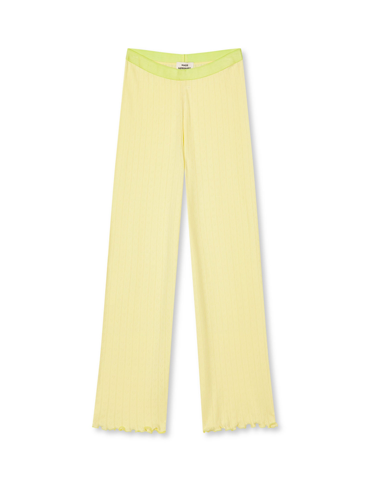 Løse og stretchy bukser med elastiklinning, brede ben og krøllet kant i blød og let jersey med nålestiksmønster.