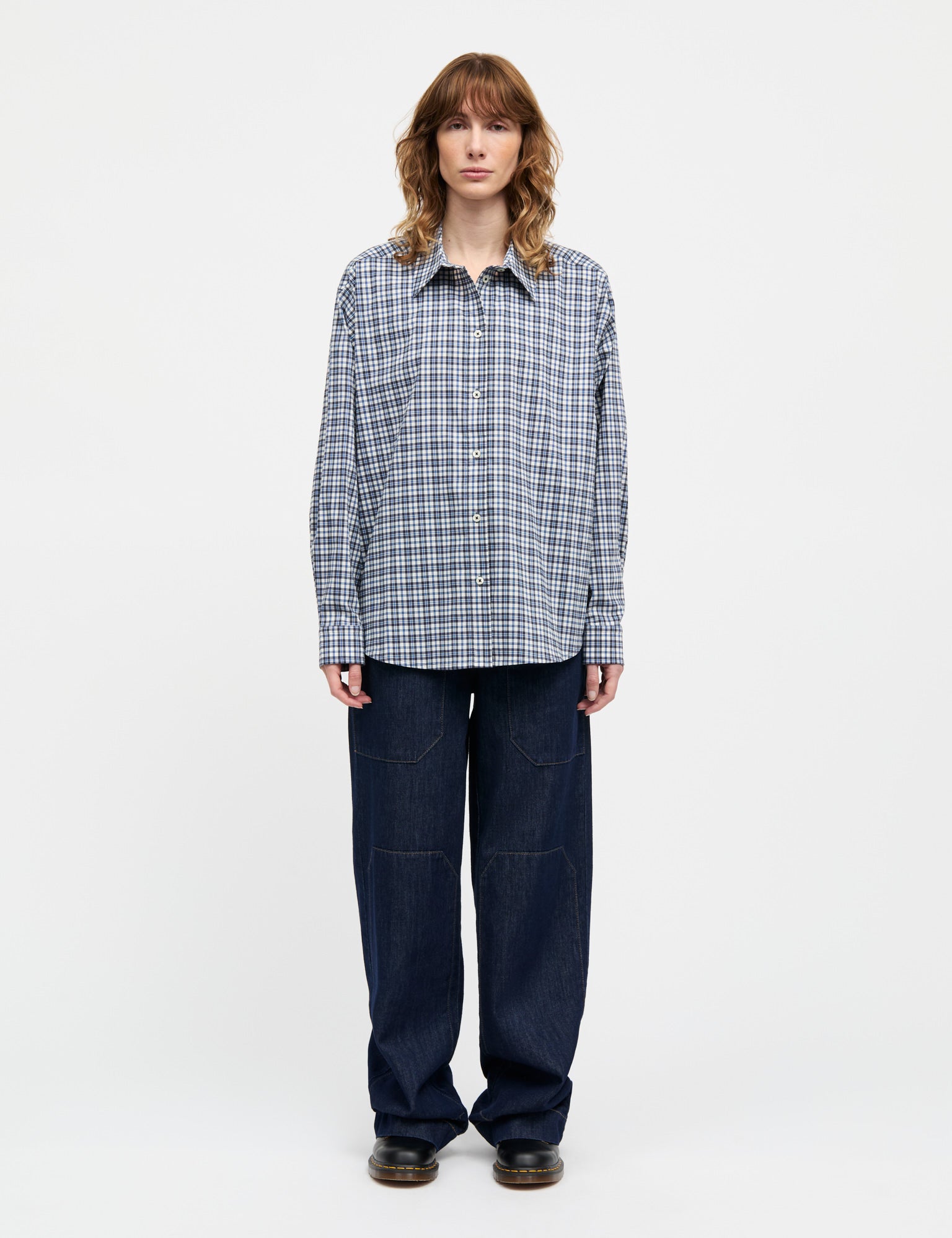 Oversized skjorte med små knapper, manchetter og afrundet turn-down krave.