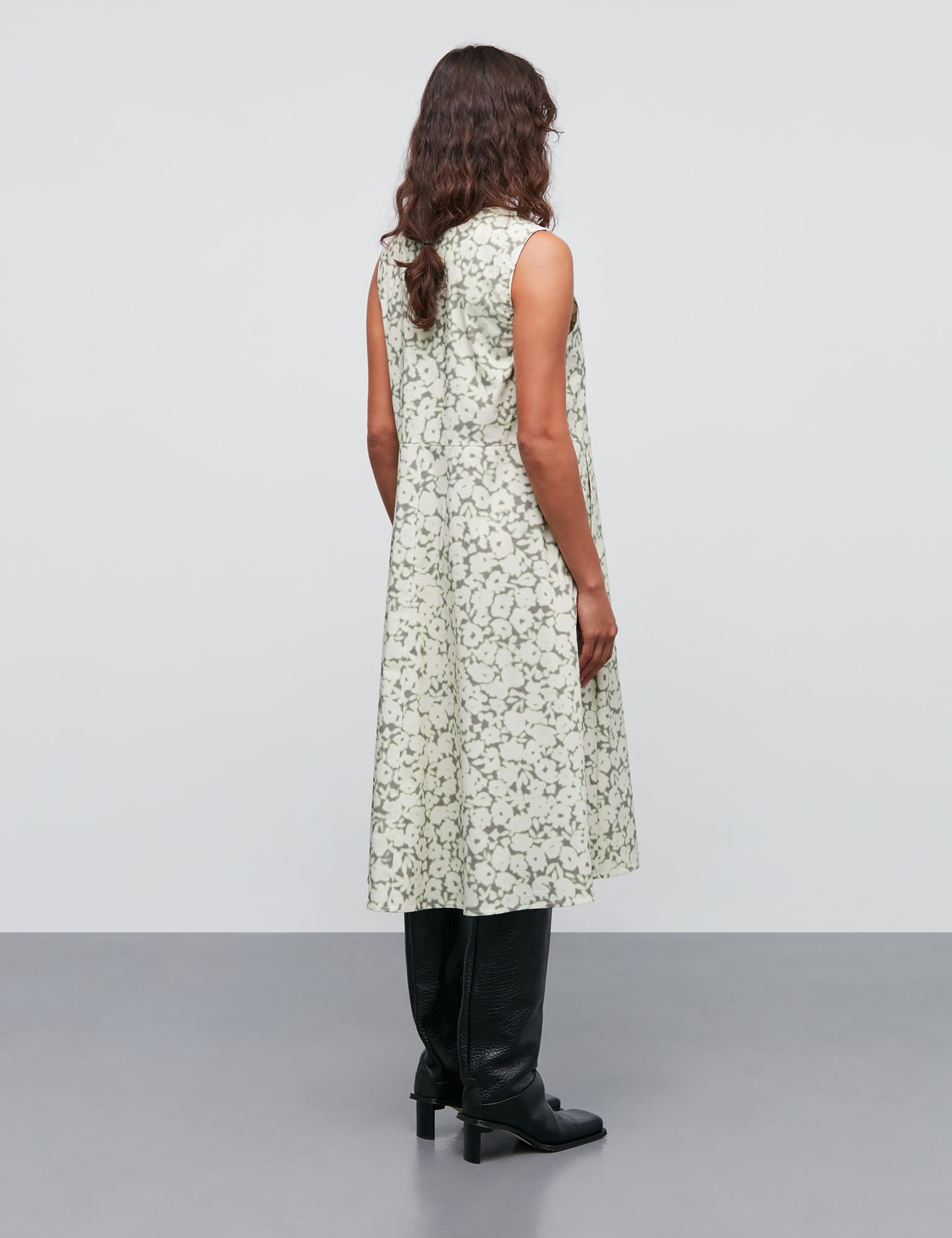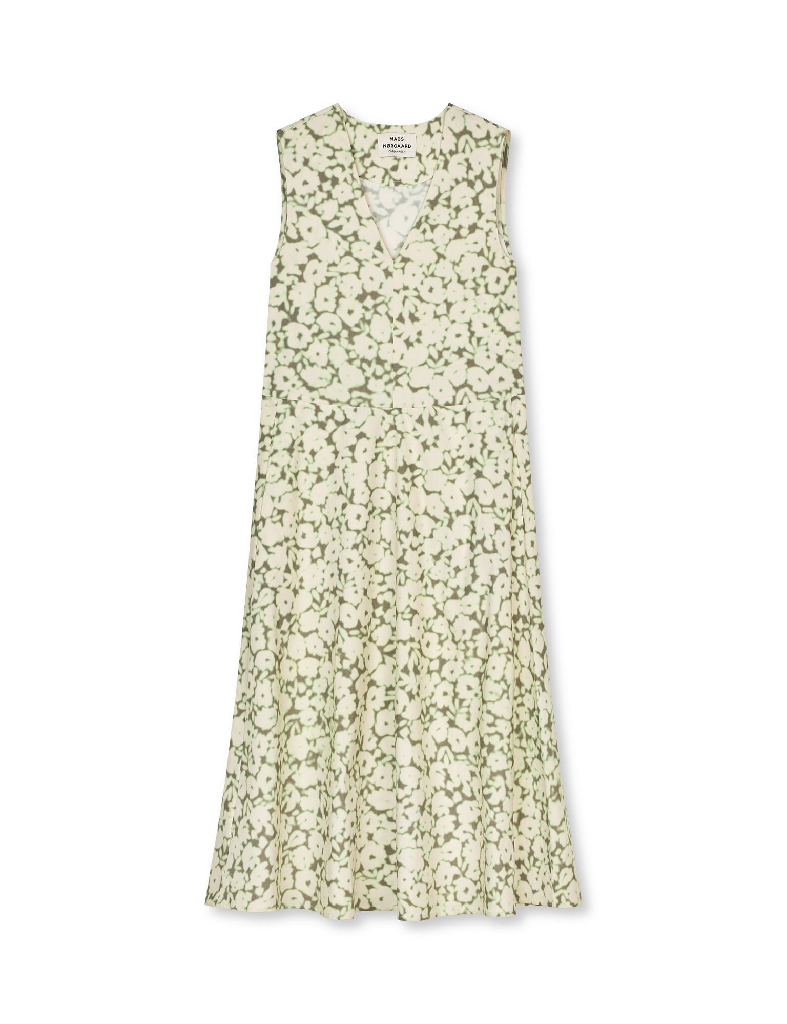 Læglang A-formet, ærmeløs kjole i blød bomuldsjersey med blomsterprint, V-udskæring og let vidde i skørtet.