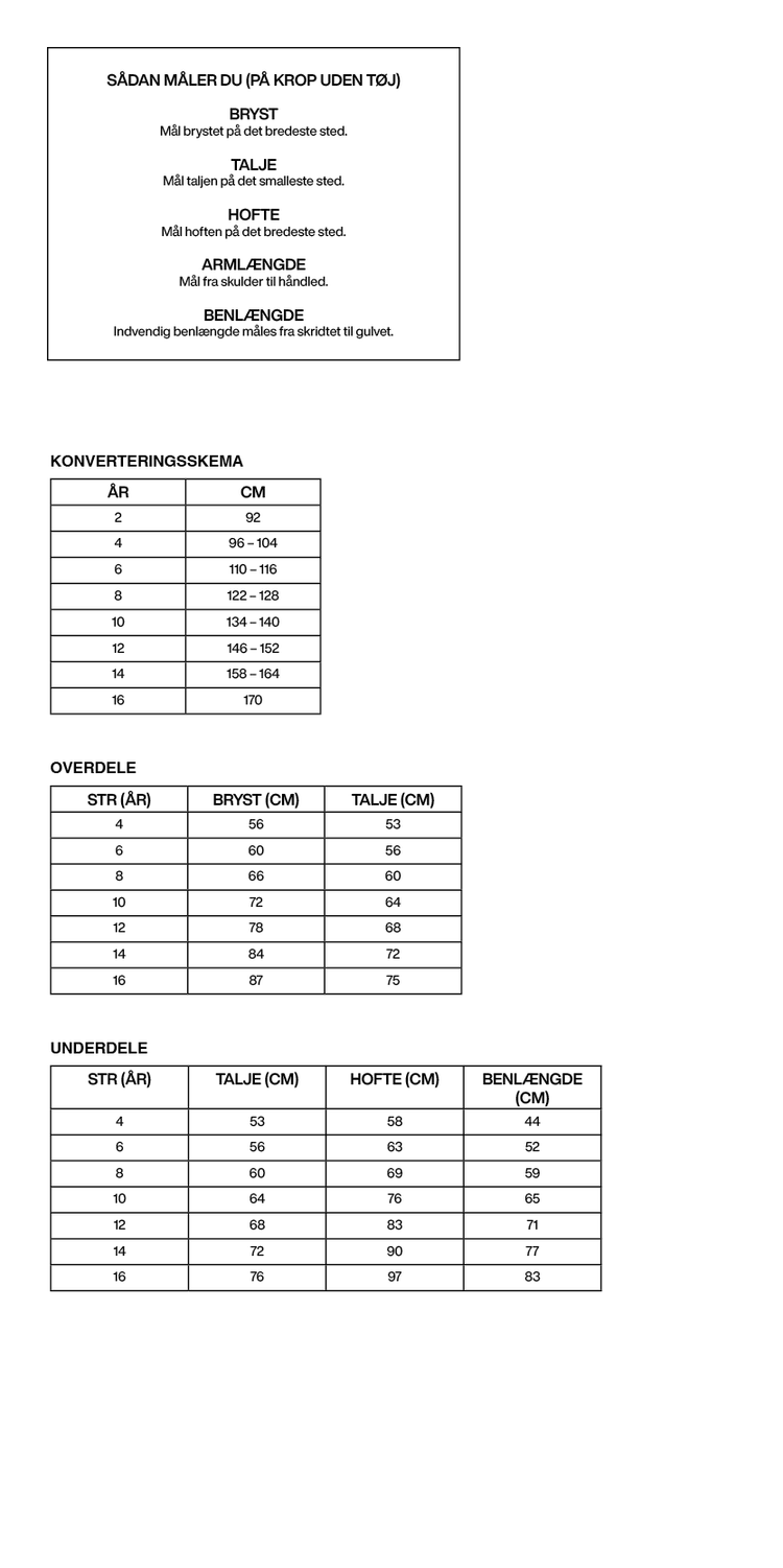 Målene er vejledende og kan variere afhængigt af materiale og pasform.