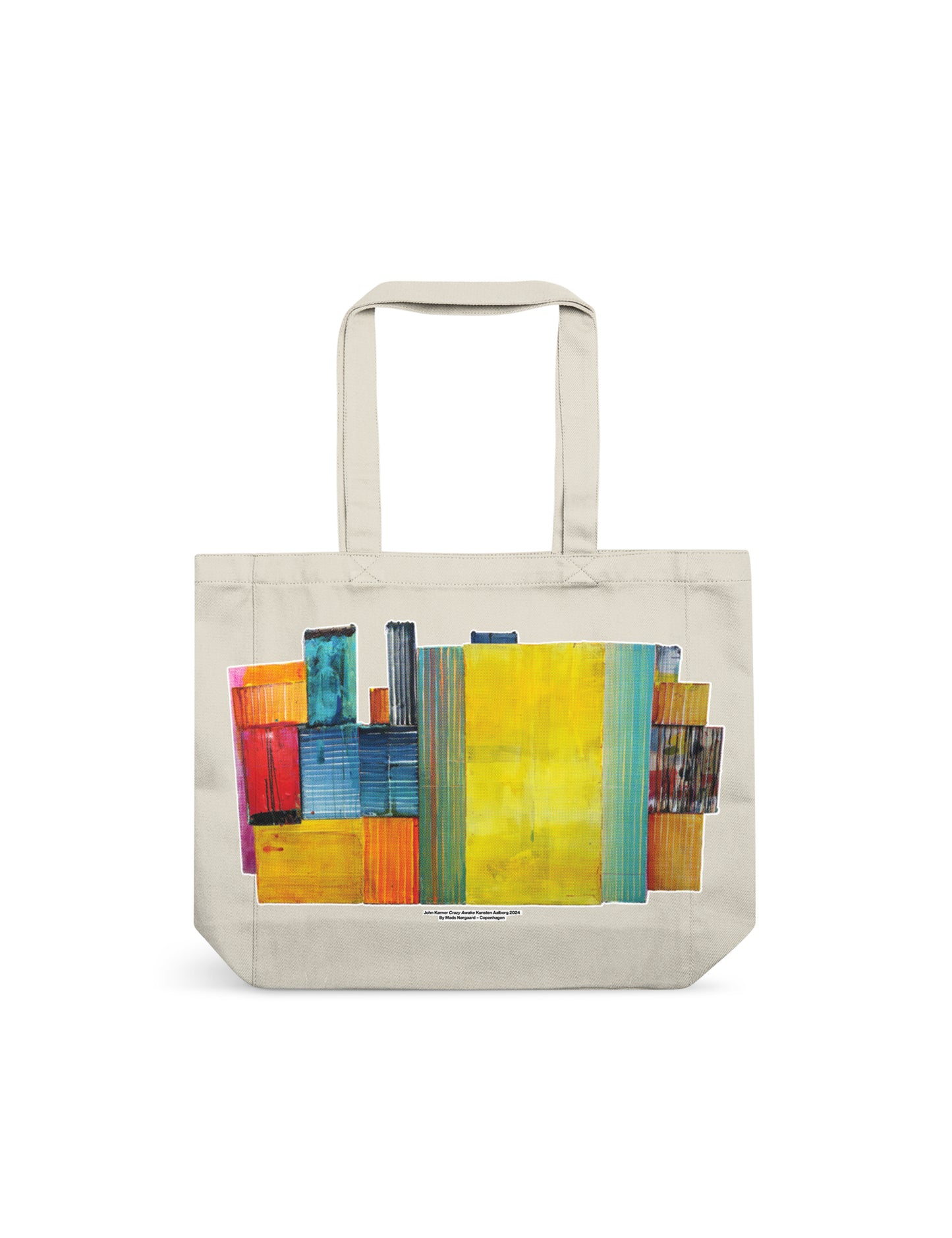 I forbindelse med John Kørners nye udstilling ”Crazy Awake” på Kunsten Museum of Modern Art har Mads Nørgaard – Copenhagen skabt en mini kollektion med et affotograferet print fra ét af John Kørners værker. Denne totebag er lavet i en kraftig bomuld med et af John Kørners print på. Alle frontprints på mini-kollektionen er printet i hånden hos Ice Screen Printing og kan derfor variere i udtryk. Tasken måler 37 x 37 x 12 cm.