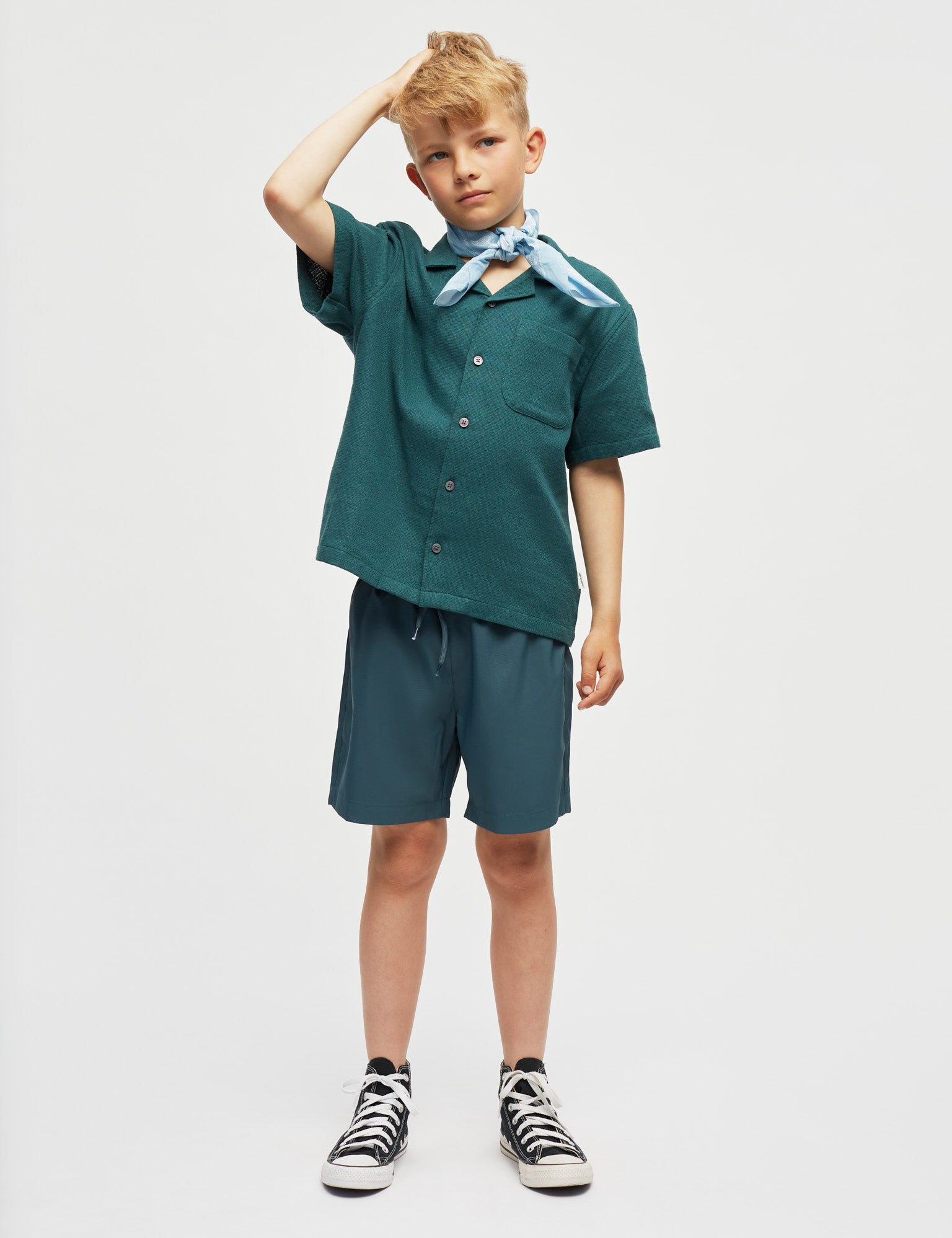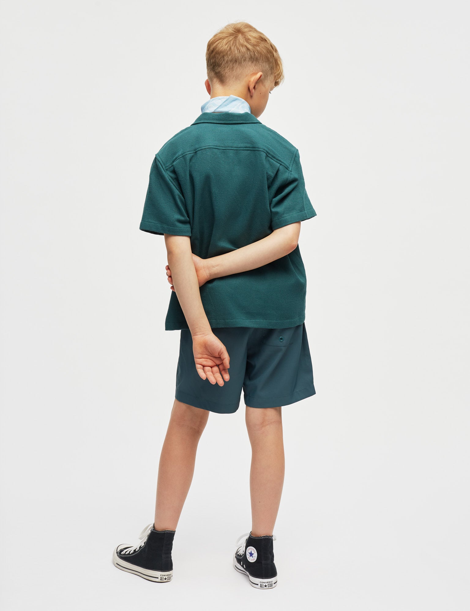 Lette shorts i hurtigttørrende polyester med elastisk linning med løbesnor, baglomme og net indeni.