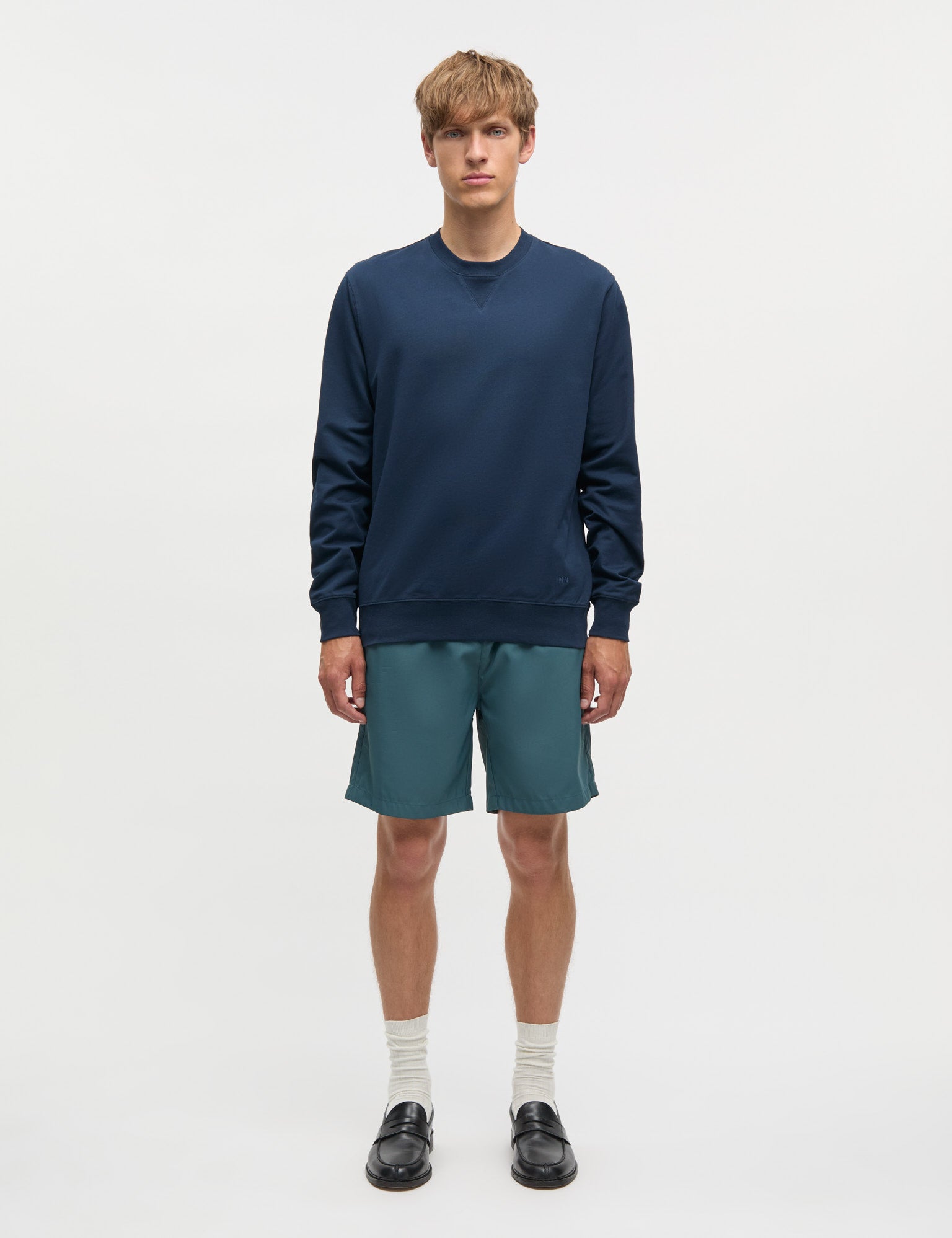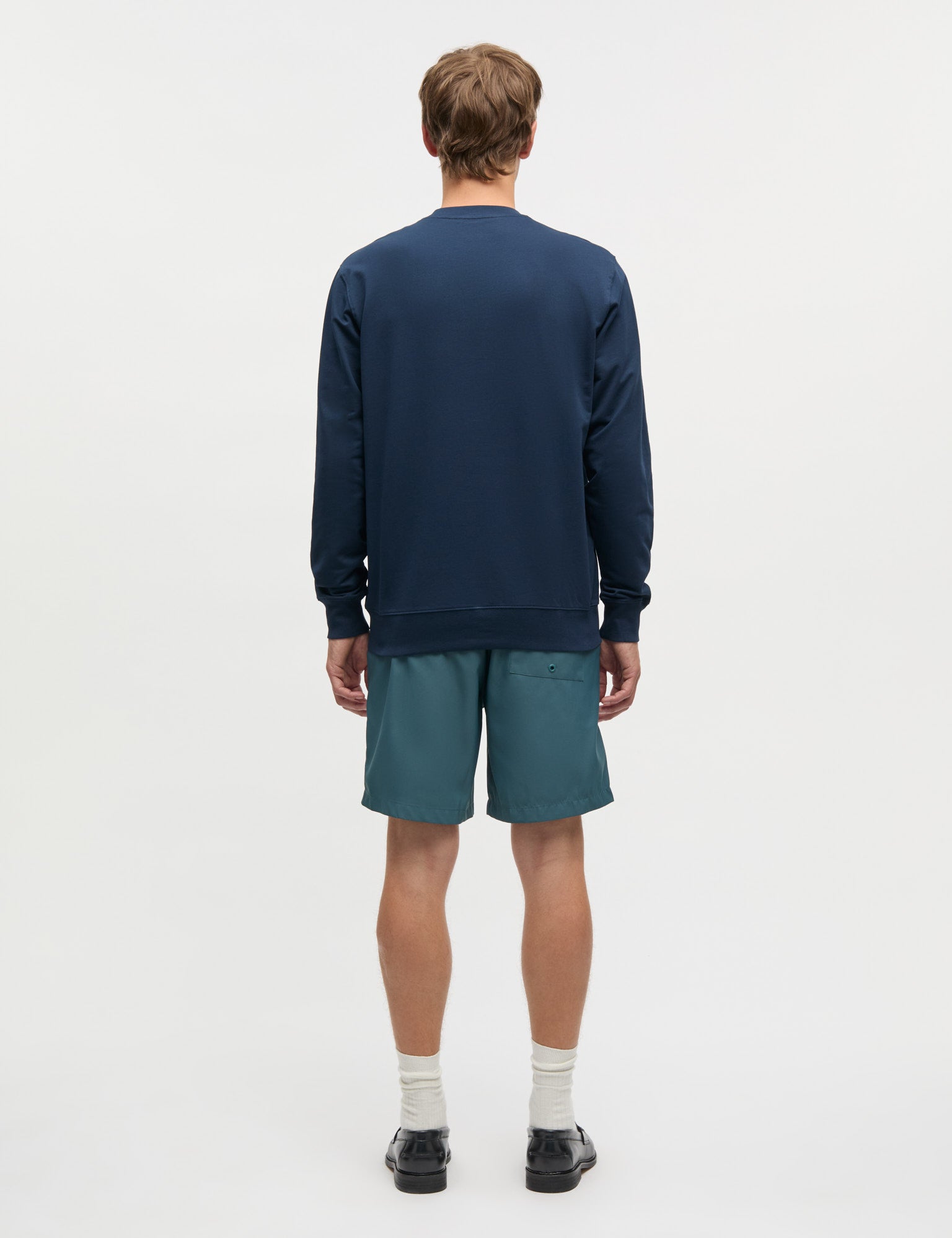 Modellen er 187 cm. høj og iført en størrelse 50/Large og 32 ved jeans.
