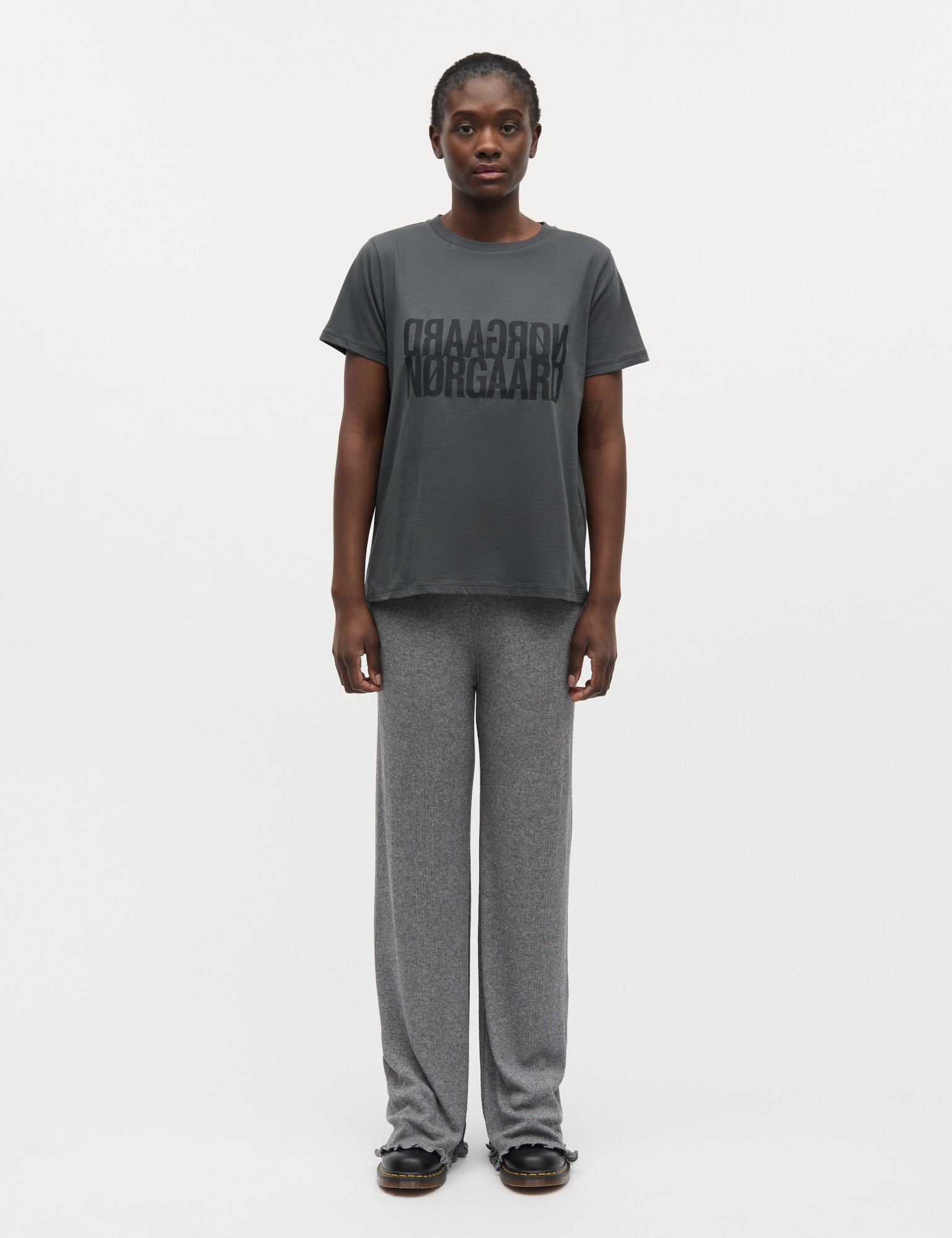 Blød og let T-shirt med korte ærmer, rund hals og delvist spejlvendt logo på brystet.