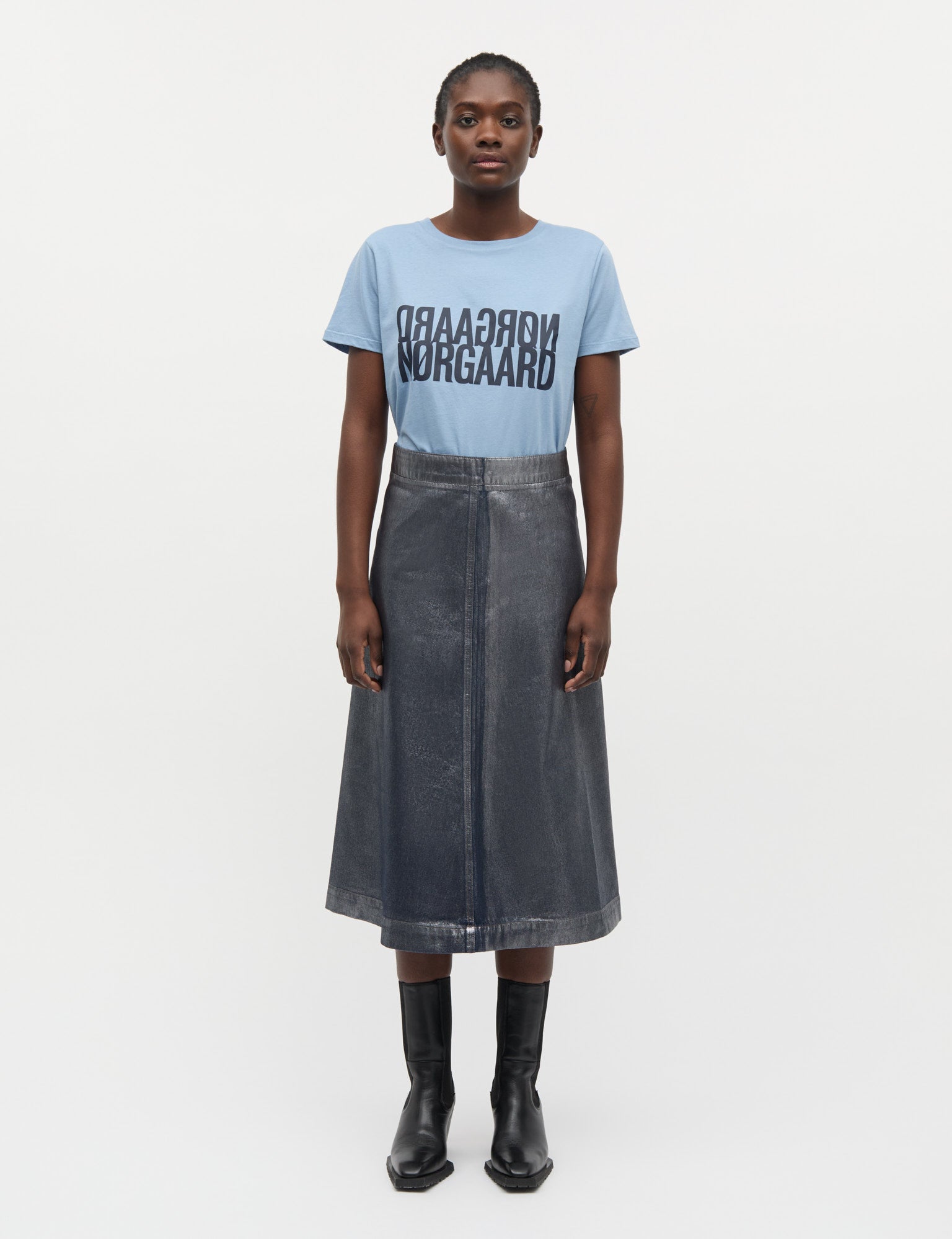 Blød og let T-shirt med korte ærmer, rund hals og delvist spejlvendt logo på brystet.