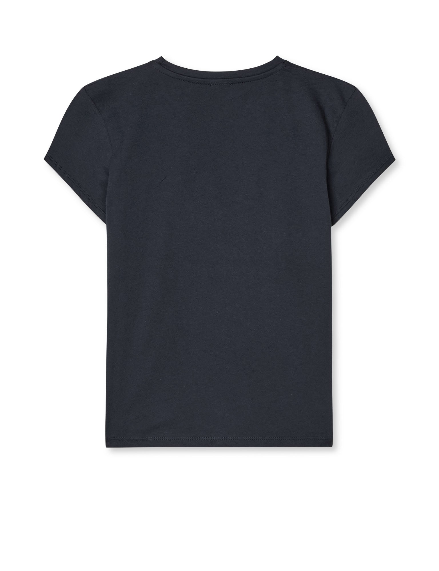 Let og blød T-shirt med meget korte ærmer og stort, delvist spejlvendt logoprint på brystet.