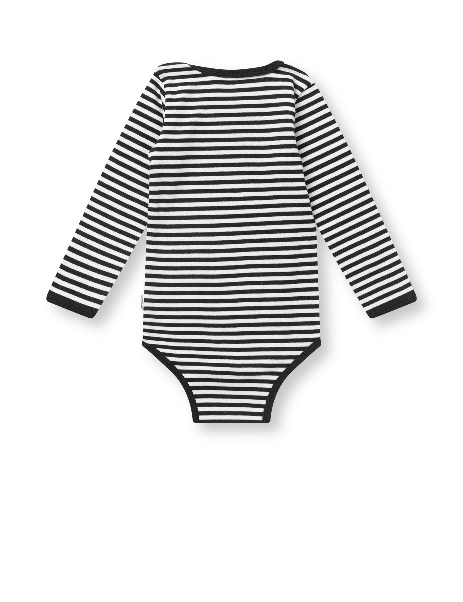 Stribet bodystocking i blød bomuld. I bunden sidder tre små trykknapper og i halsen sidder en enkelt.