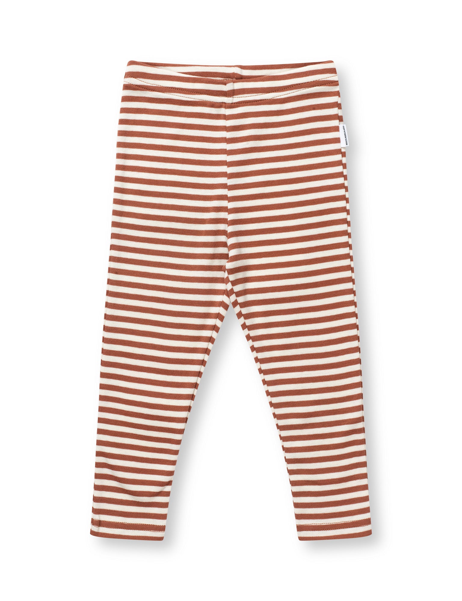 Stribet leggings i en blød og fleksibel bomuld. De kommer i tre forskellige farver.