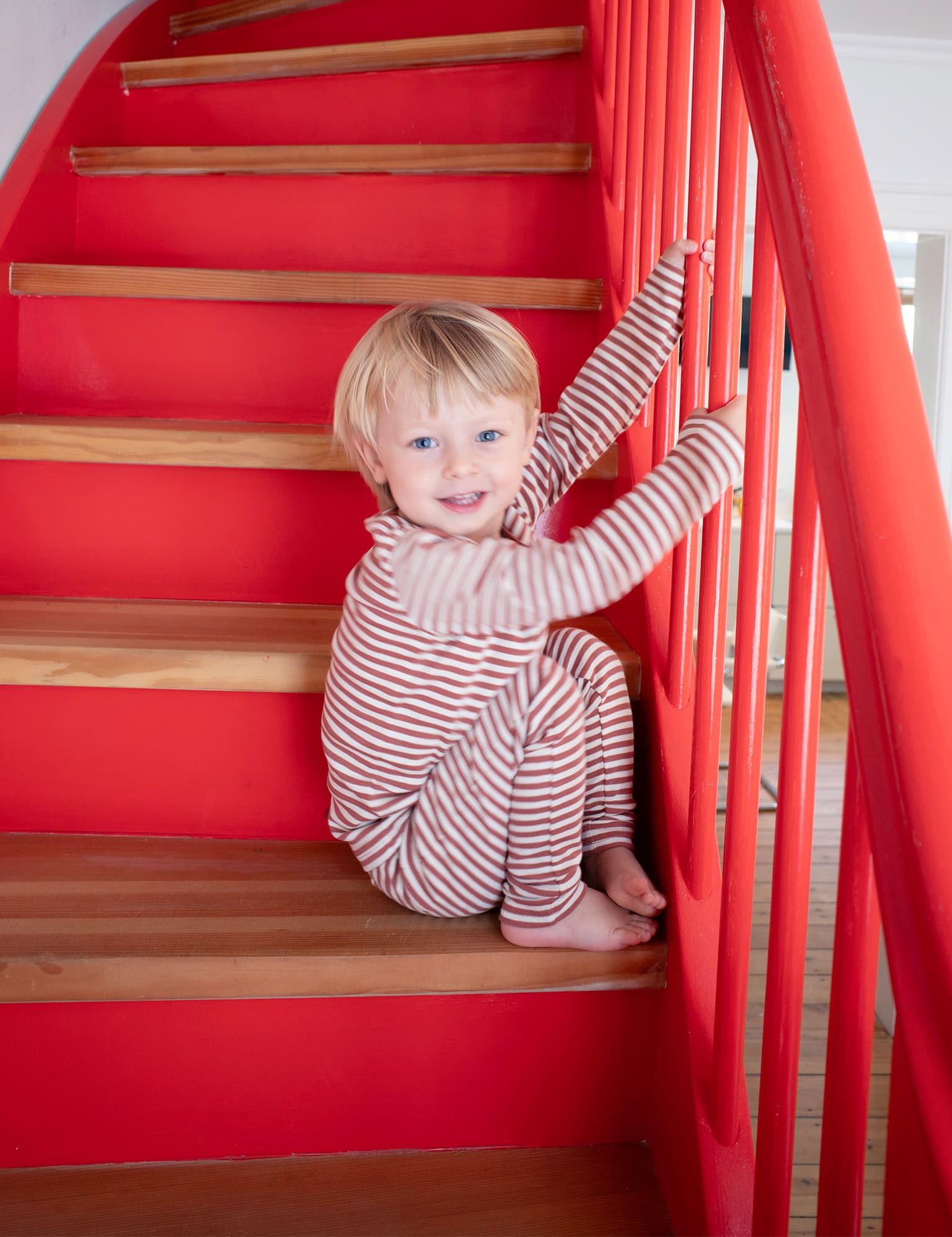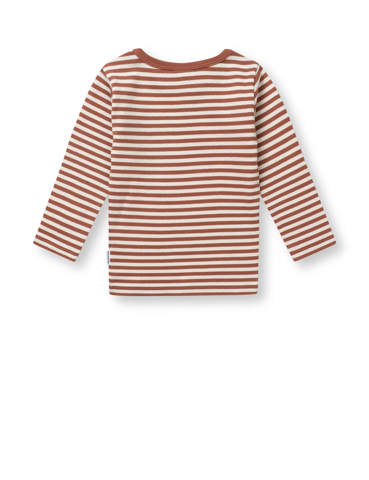 Stribet langærmet t-shirt i en blød bomuld. Størrelse 56 til 92 har knapper ved halsen, størrelse 98 til 104 har ikke.