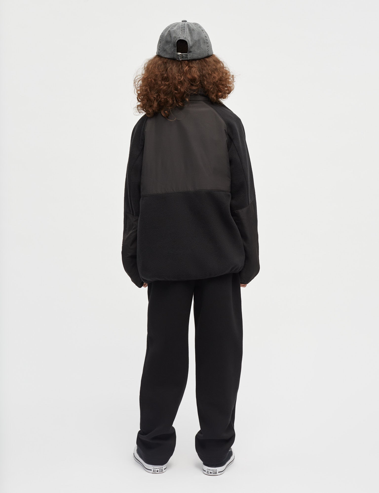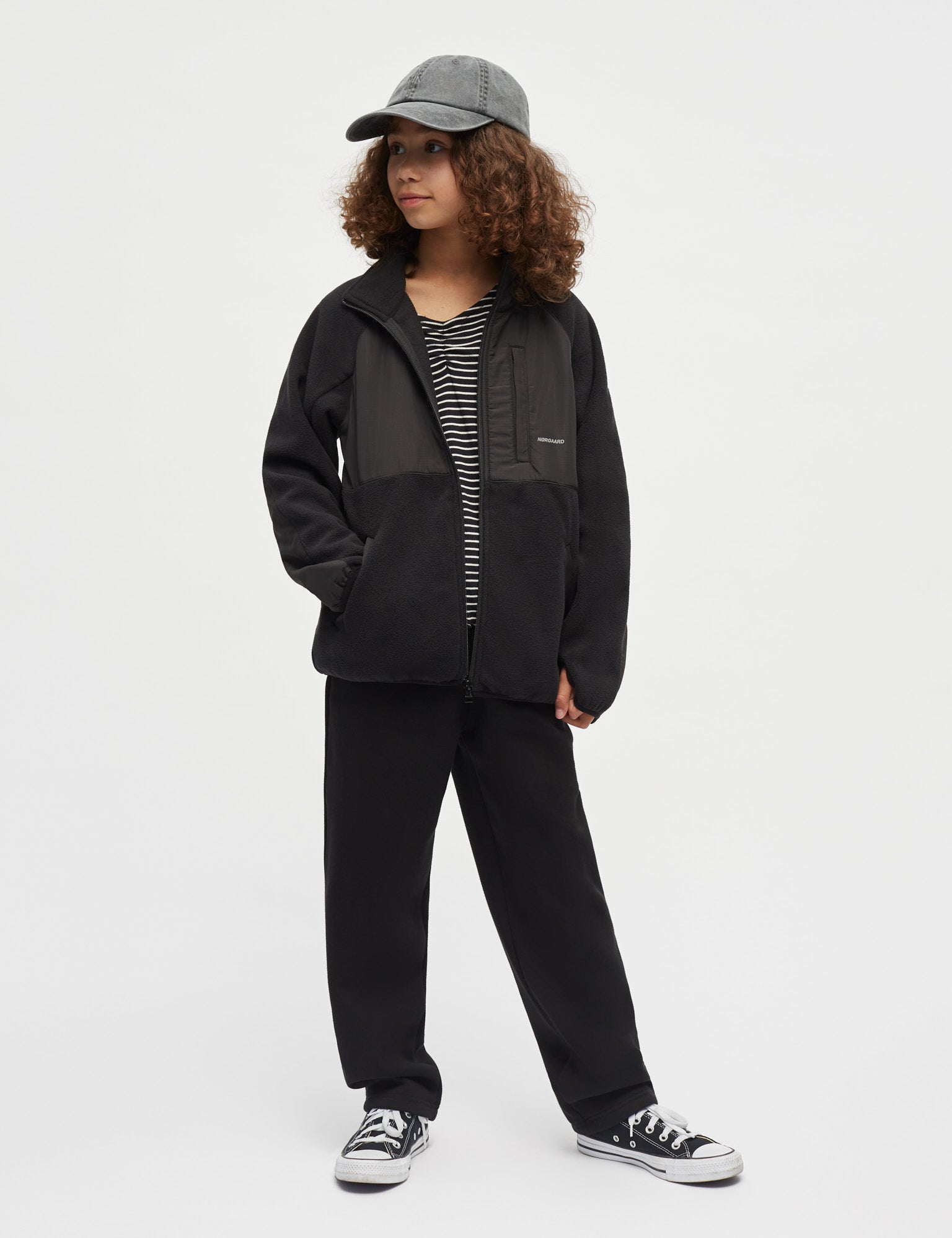 Blød fleecejakke i regular fit med høj hals og lynlåslukning, lommer i siderne samt en lodret lomme med skjult lynlås på det ene bryst.