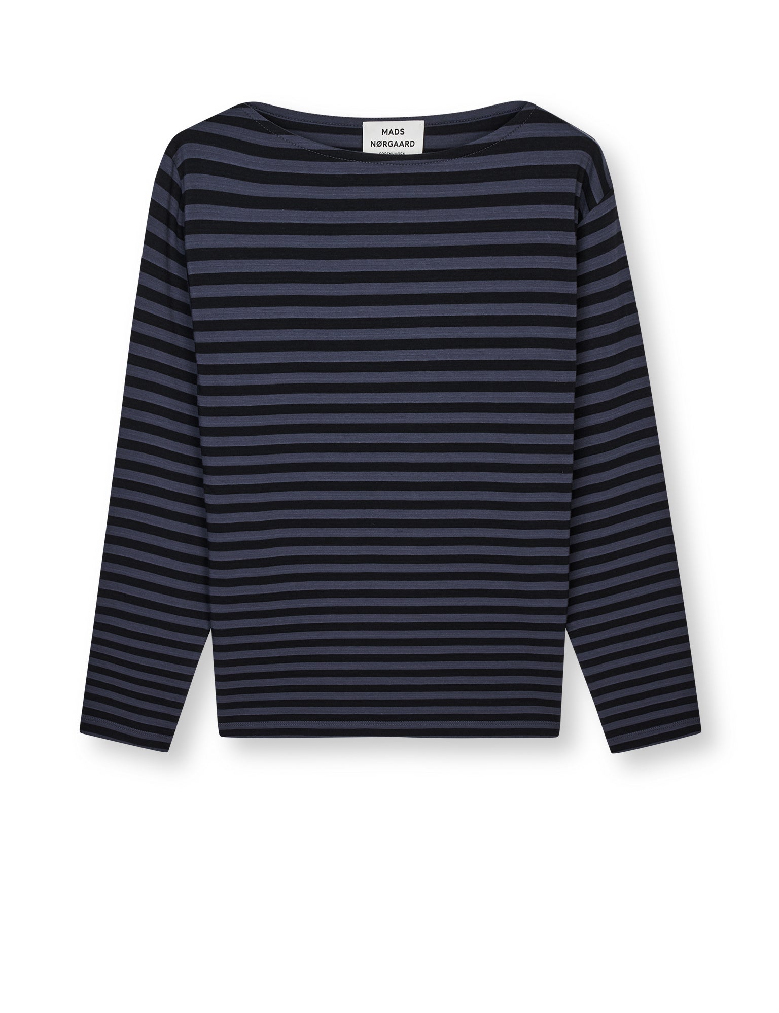 Blød og let langærmet T-shirt med bådudskæring og striber på tværs.