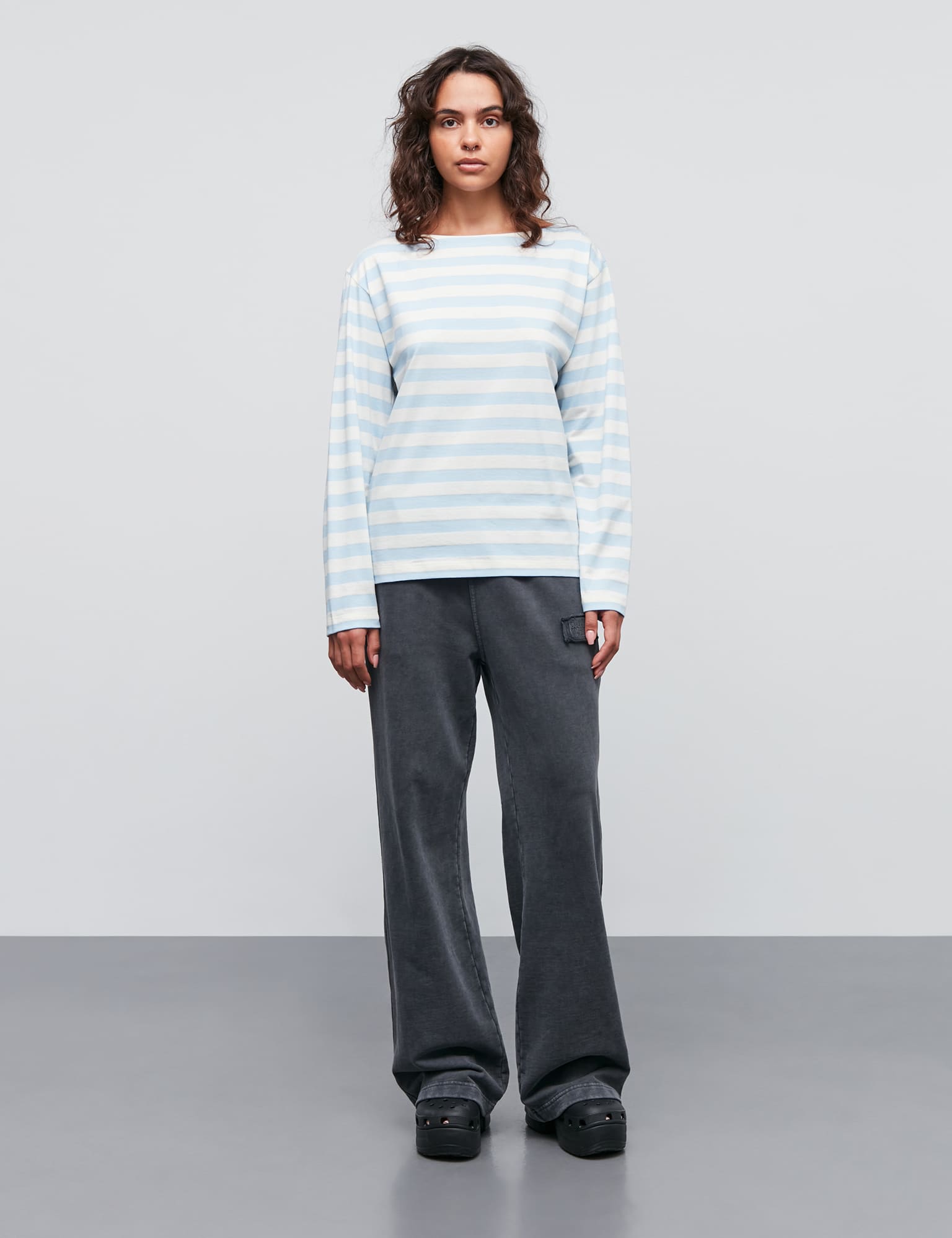 En anelse boxy T-shirt i blød bomuld med bred bådudskæring og lange ærmer.