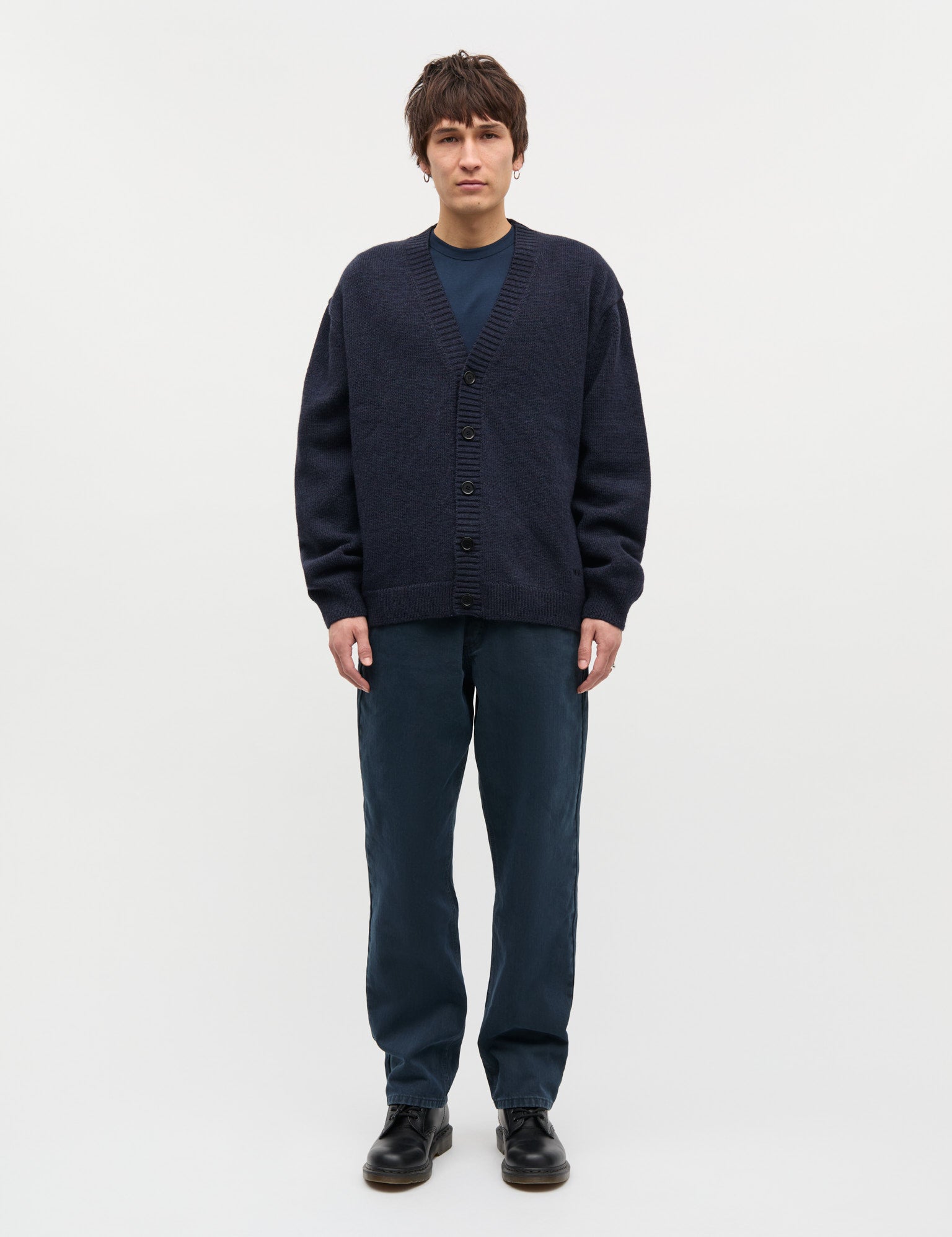 Blød og loose strikcardigan med hængende skuldre, V-udskæring, knapper og ribstrikkede kanter.