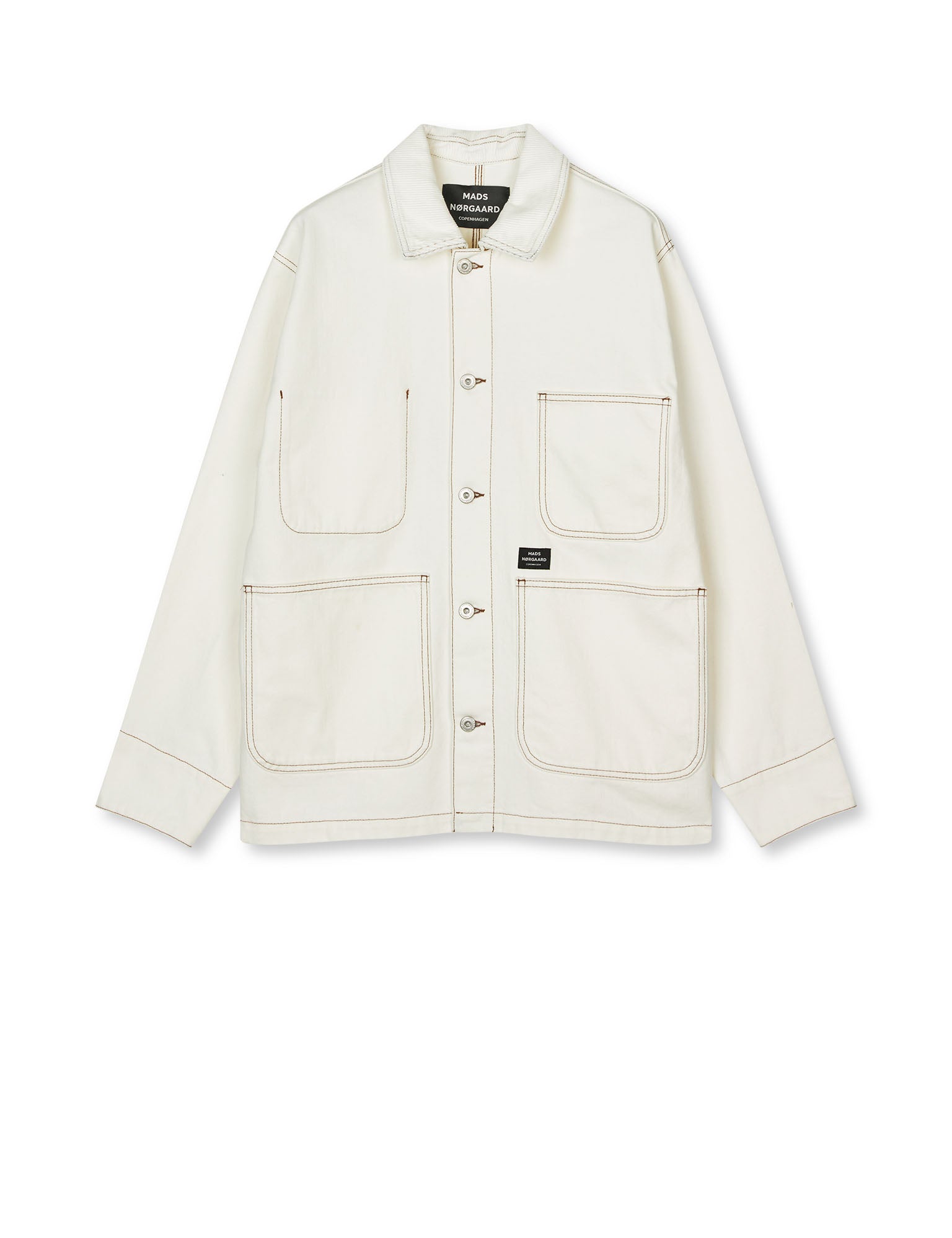 Workwear-denimjakke i bomuld med løs pasform, sænkede skuldre, cut-away krave og fire frontlommer.