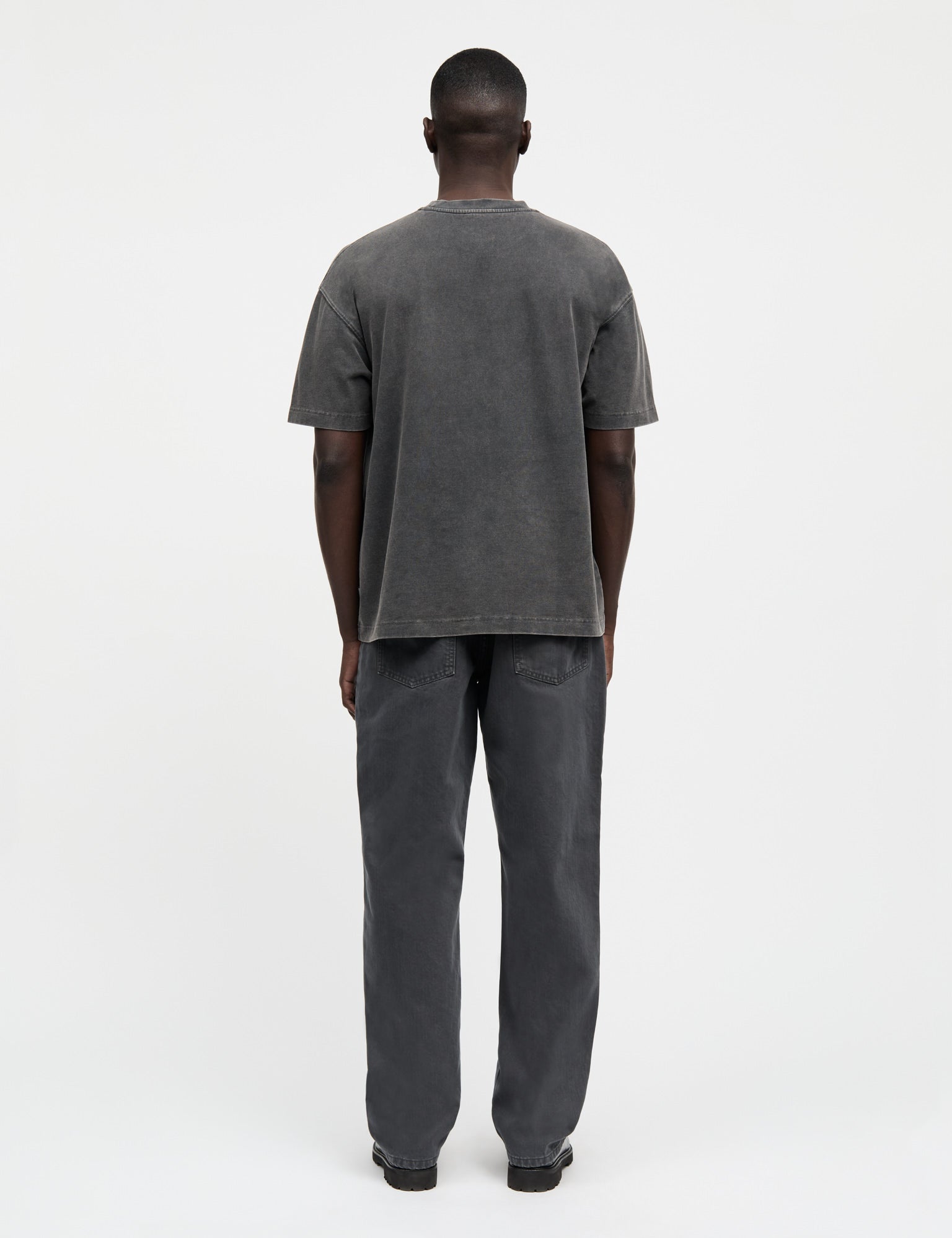Løstsiddende 5 pocket-jeans med lige ben, læderlabel bagpå, lynlås og knap.