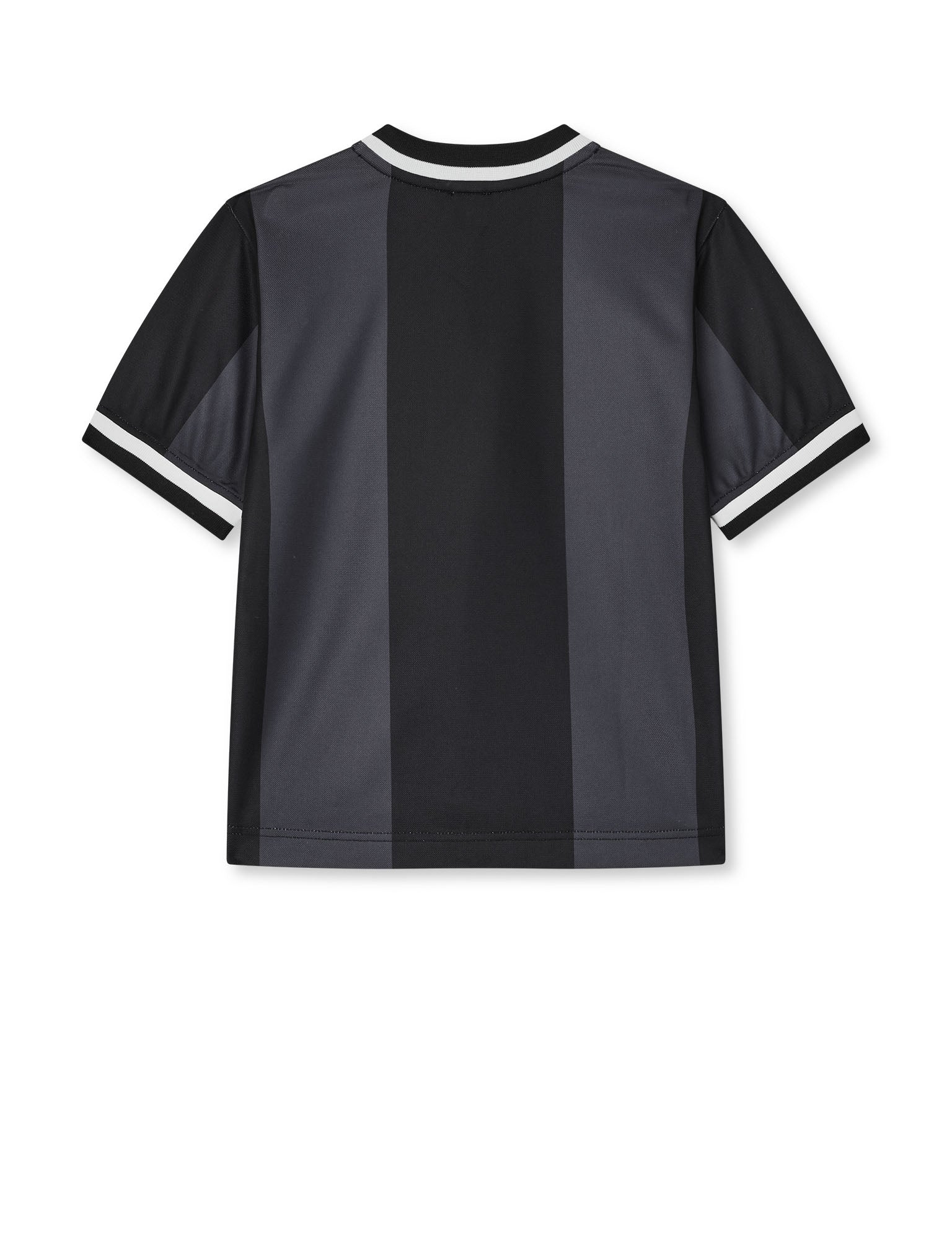 Fodbold inspireret t-shirt i boxy fit, galt overflade og stribede detaljer ved halskant og ærmet.