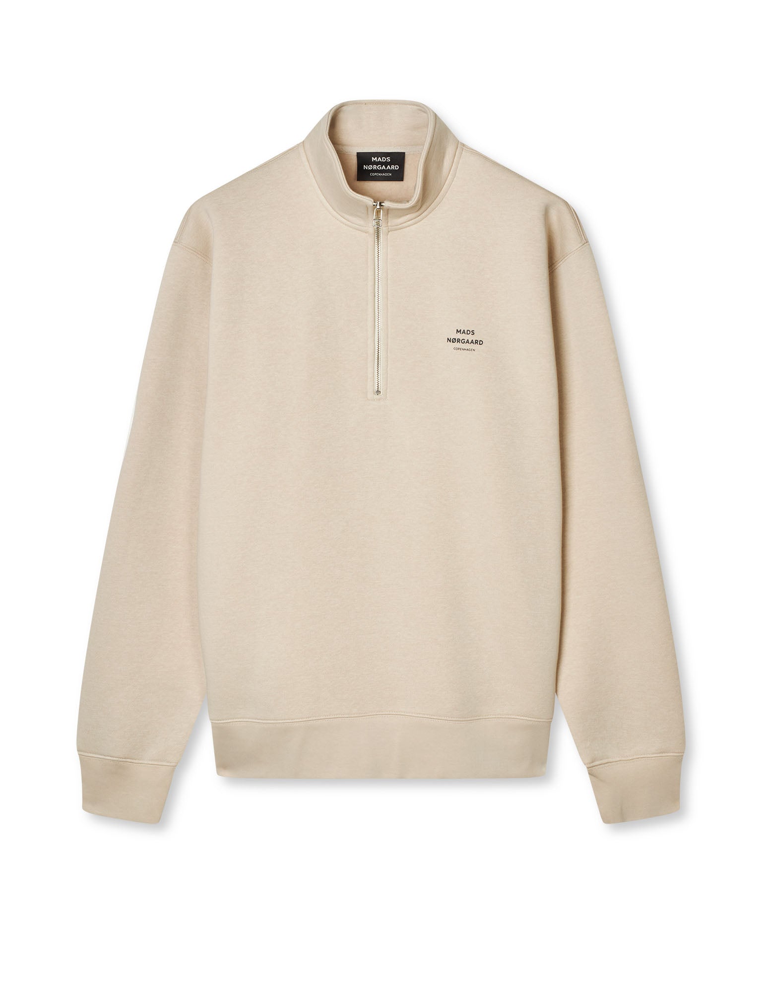 Blød sweatshirt med høj hals med lynlås til midt på brystet, ribkanter og lille logo på brystet.