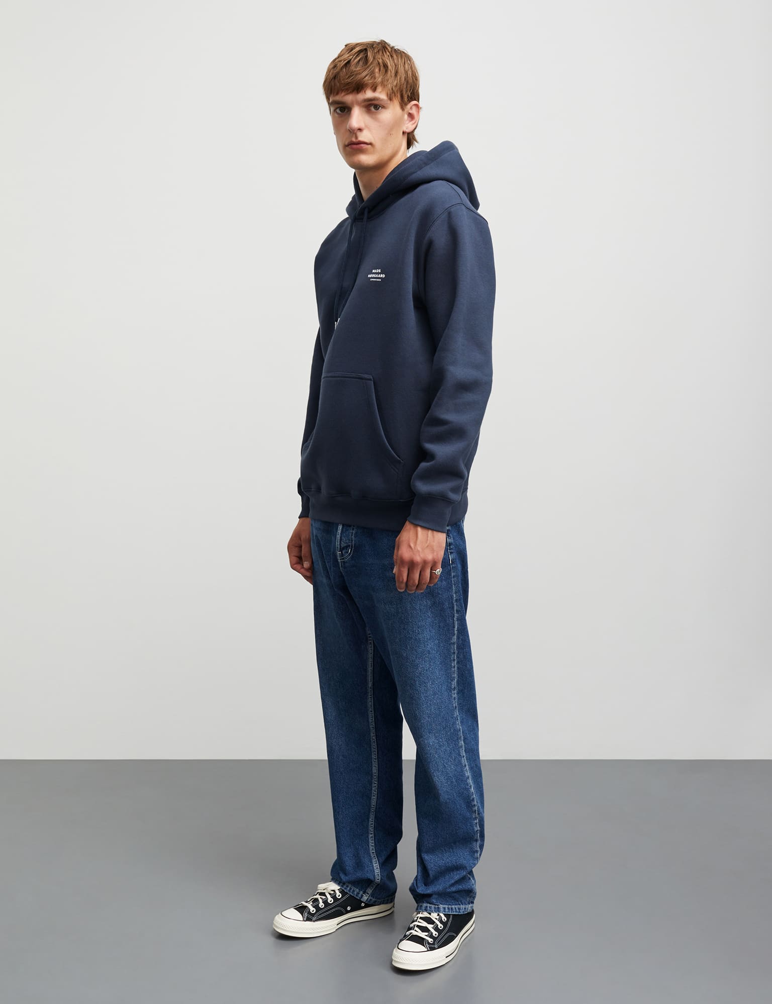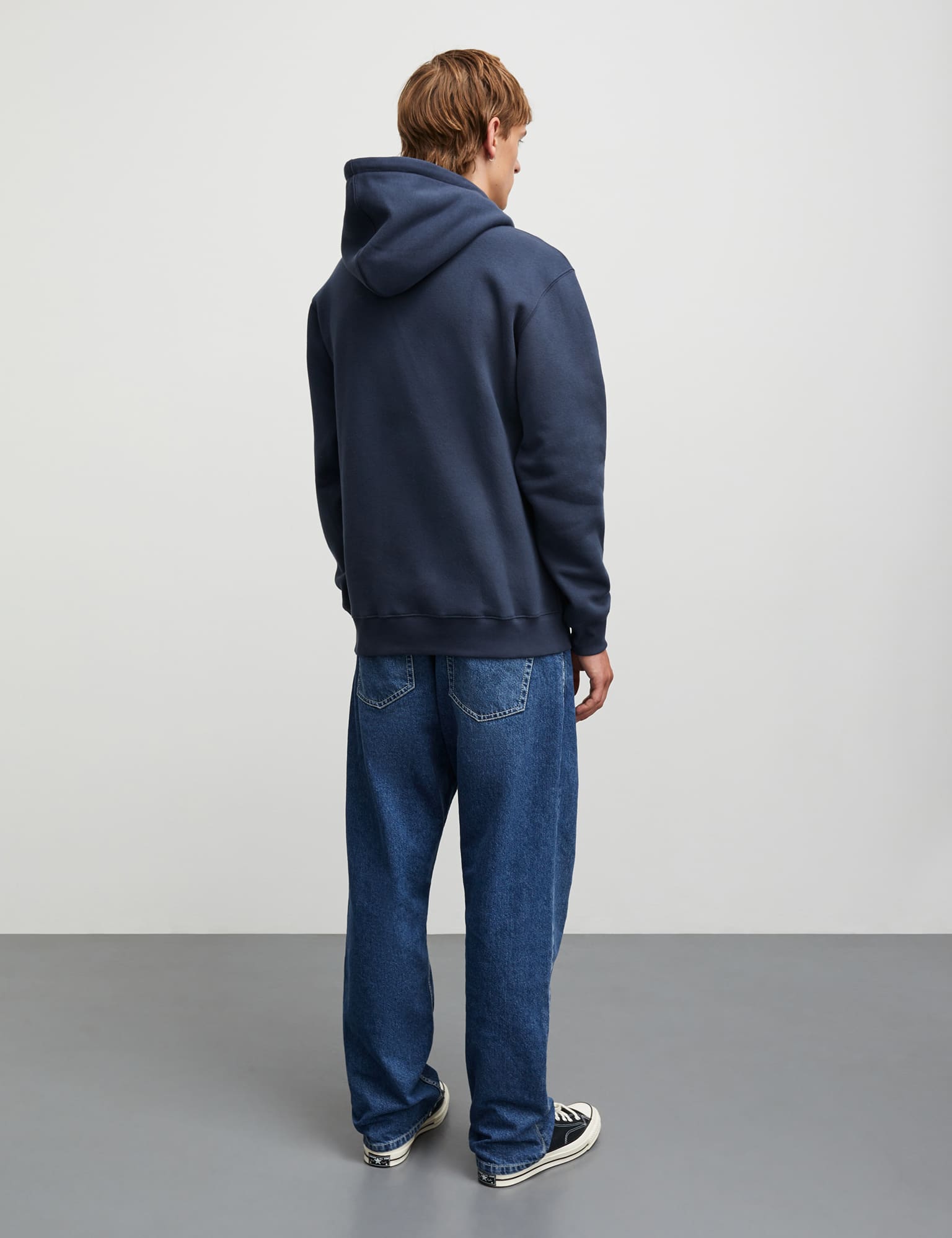 Vores klassiske hættetrøje Standard Hoodie Logo Sweat er lavet af 65 % bomuld og 35 % polyester med en blød børstet inderside. Pasformen er regular, hætten er stor og blød, kanterne har rib, og på maven sidder en dyb kængurulomme.