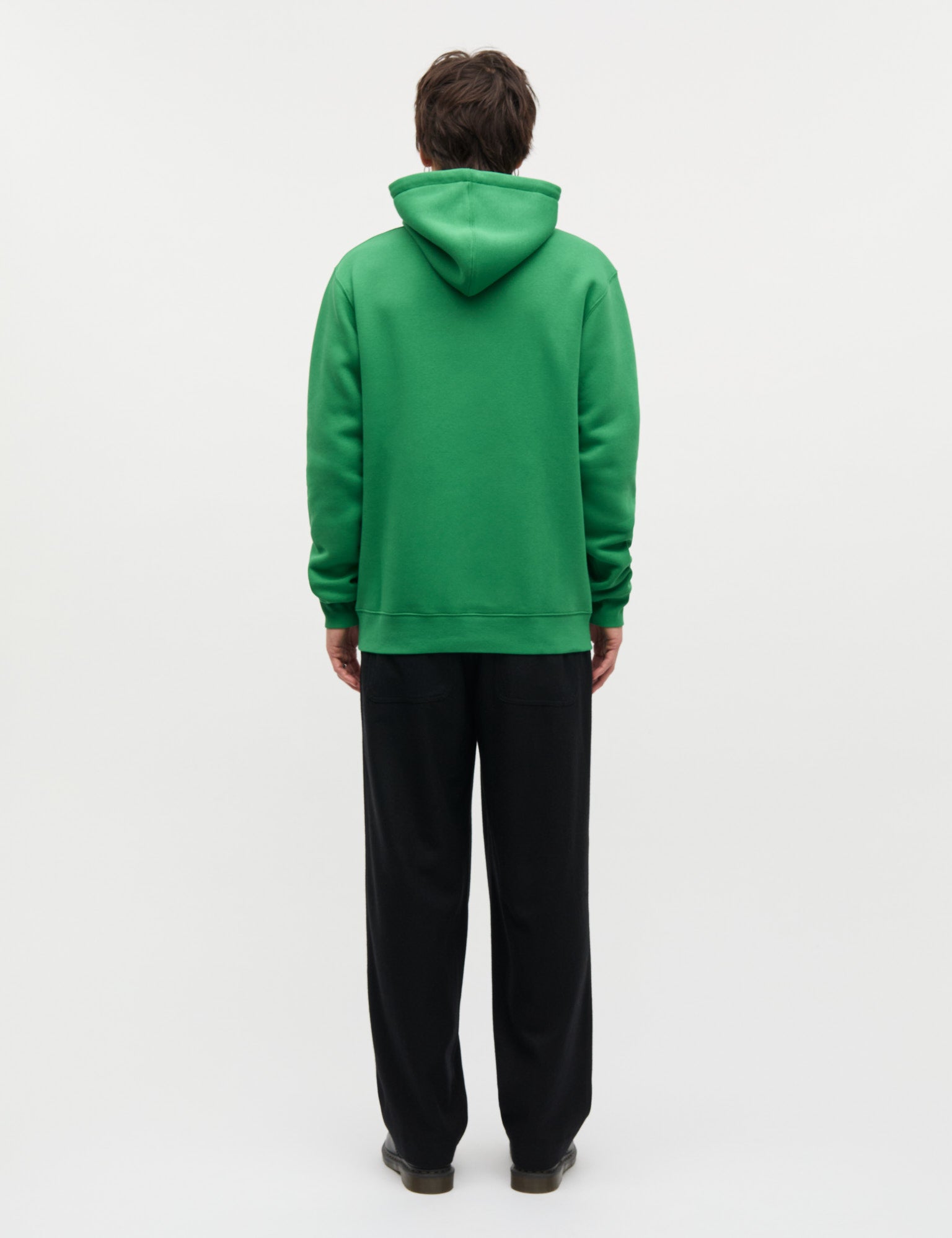 Vores klassiske hættetrøje Standard Hoodie Logo Sweat er lavet af 65 % bomuld og 35 % polyester med en blød børstet inderside. Pasformen er regular, hætten er stor og blød, kanterne har rib, og på maven sidder en dyb kængurulomme.