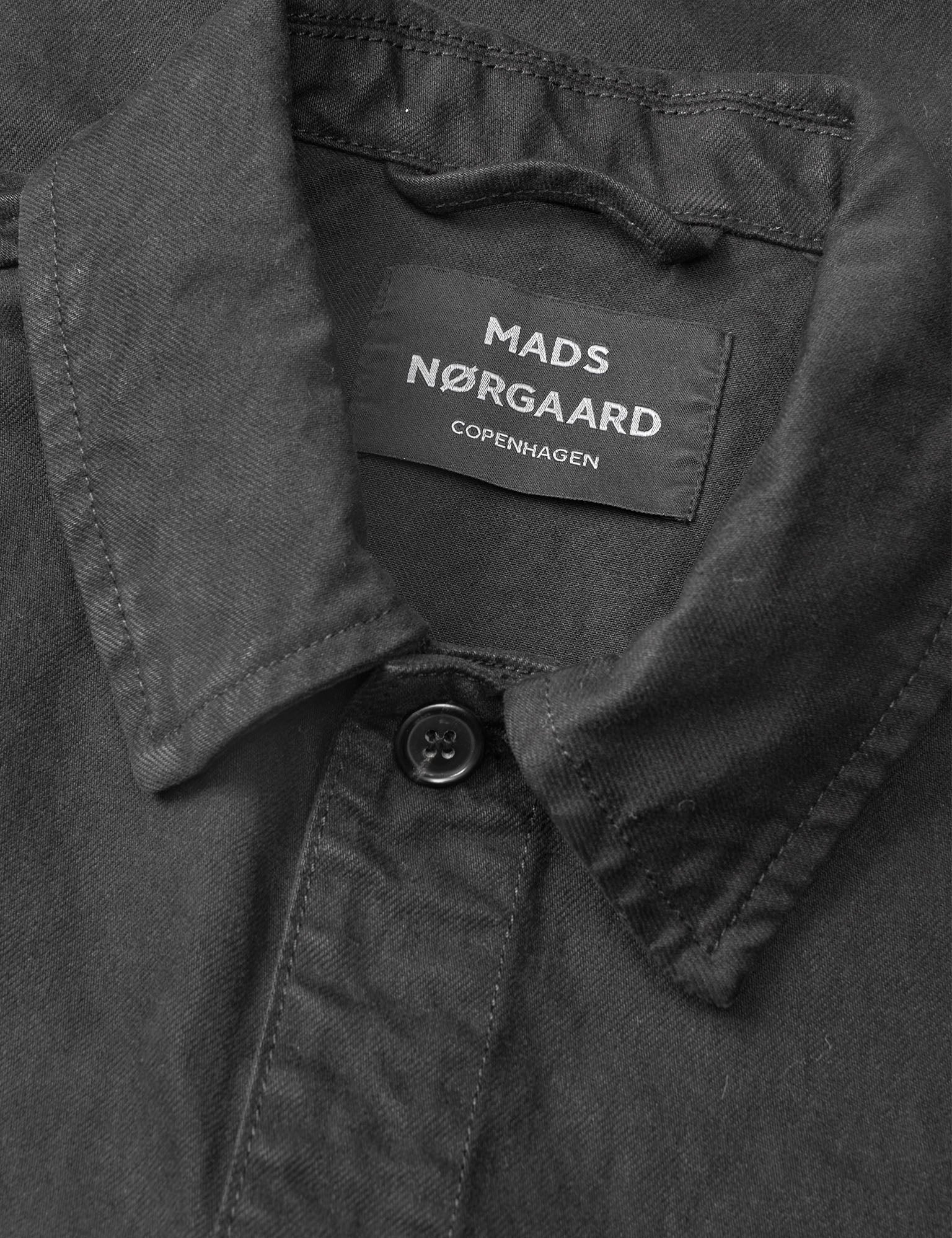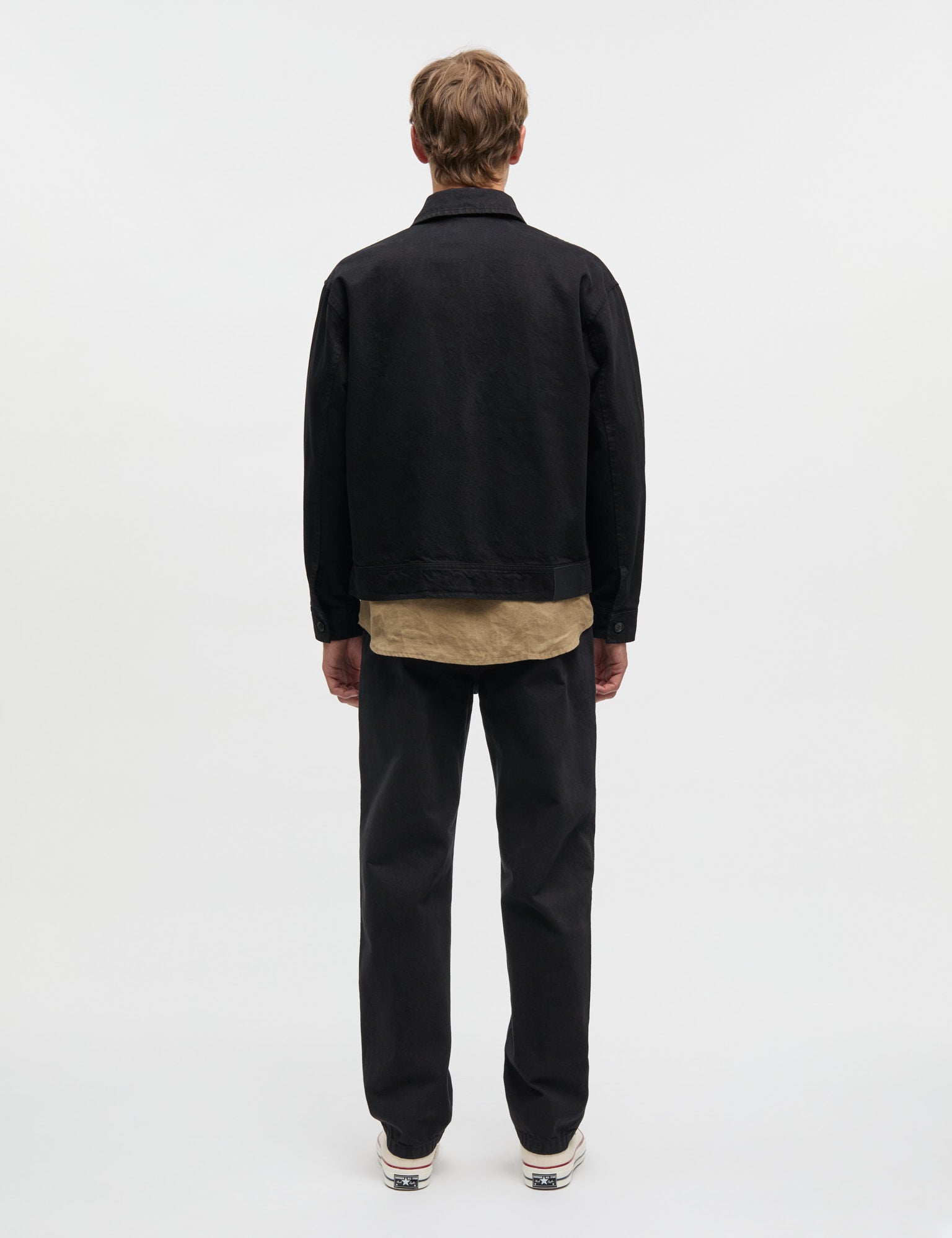 Boxy jakke med cut-away krave, knapper, manchetter og to udvendige lommer.