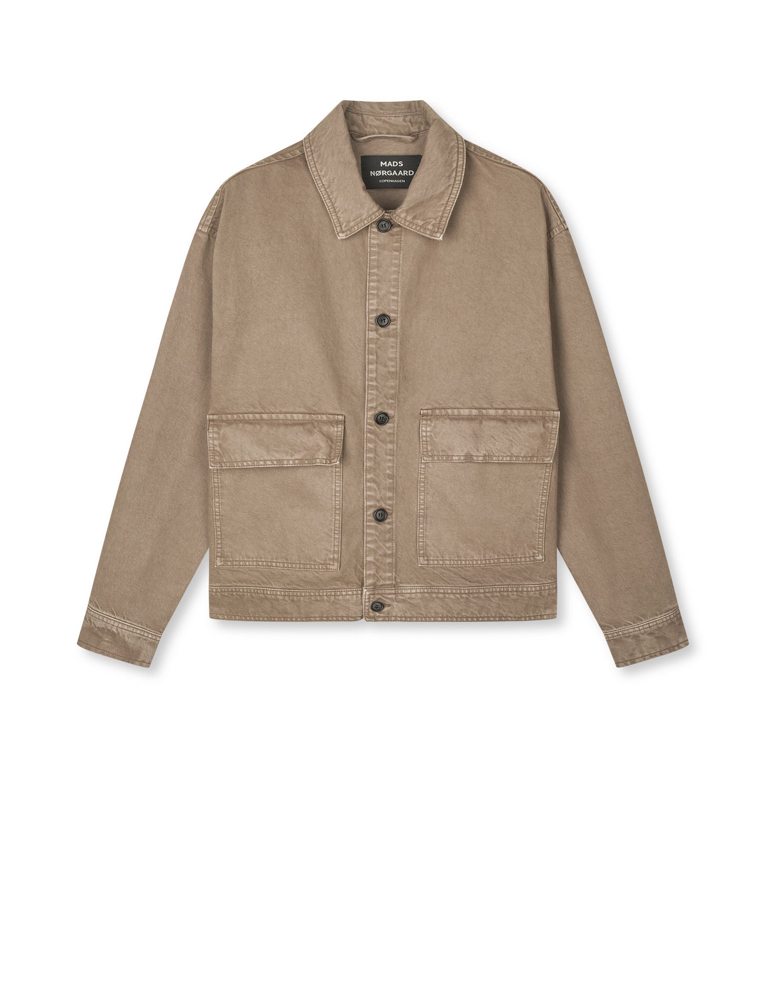 Boxy jakke med cut-away krave, knapper, manchetter og to udvendige lommer.