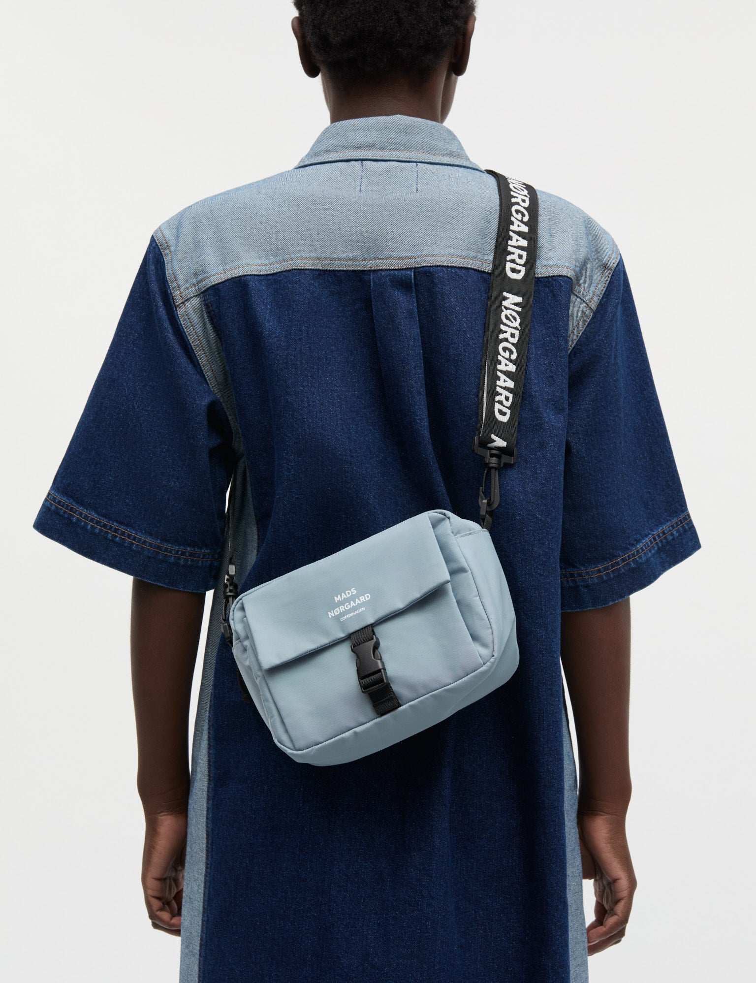 Crossbody-taske med en bred, justerbar og aftagelig logorem, lynlås, en inderlomme og en yderlomme med klikspænde.
