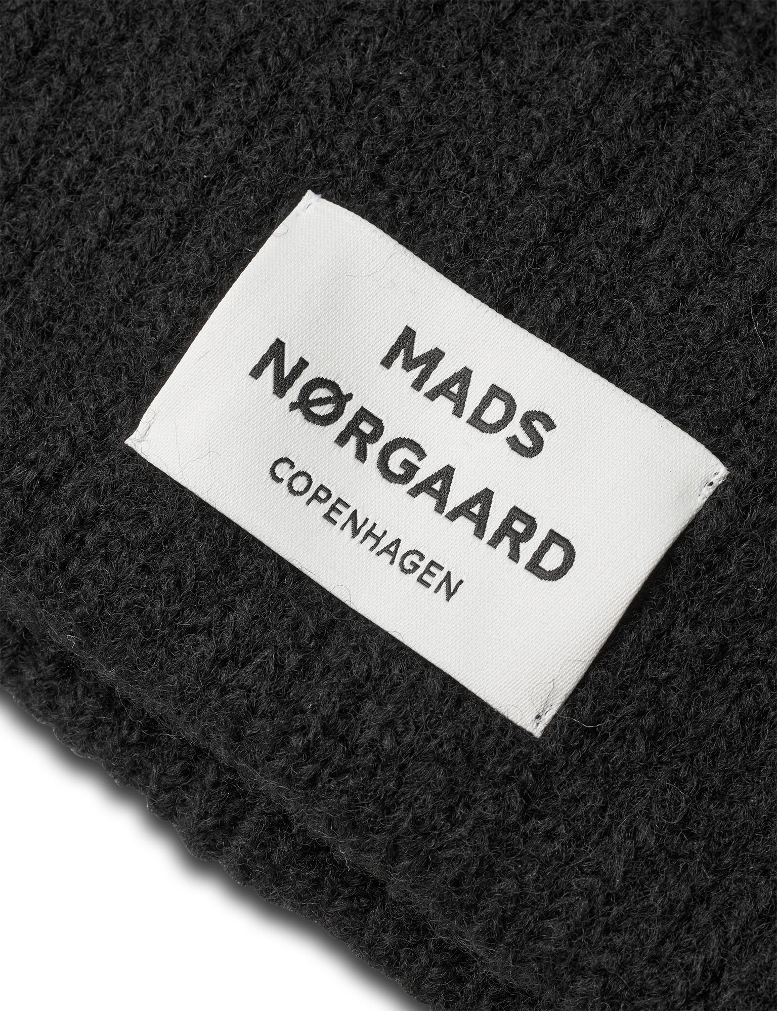Blød, ribstrikket hue med bredt dobbelt-rib og påsyet logolabel.
