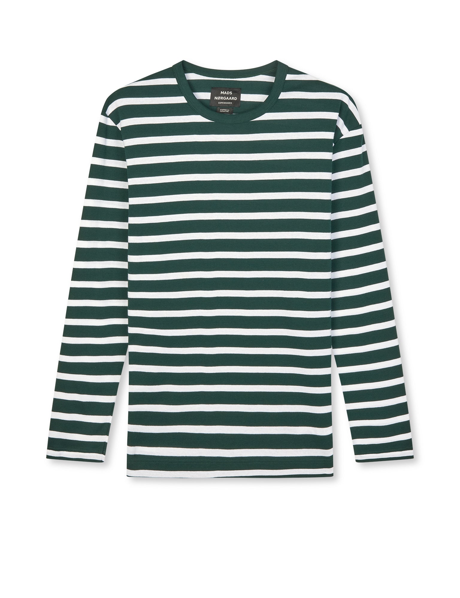 Den langærmede, økologiske T-shirt Trio Rib Tobias har skiftevis smalle og brede striber, smal pasform og rund hals med påsyet kant.