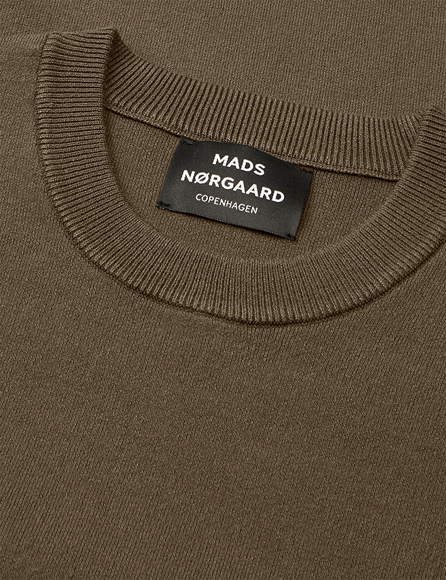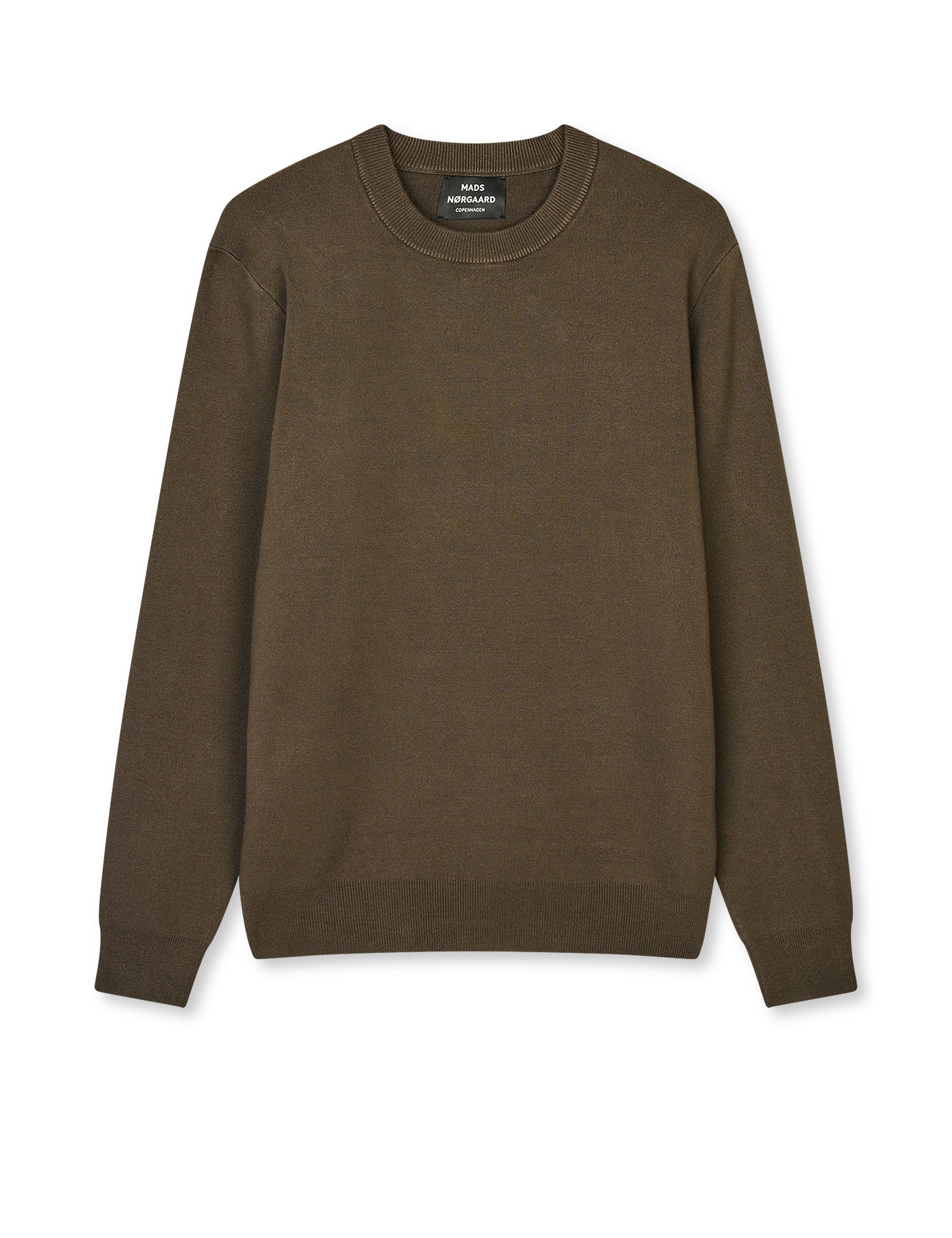Helt glat og enkel striktrøje med rund hals og strikkede ribkanter.