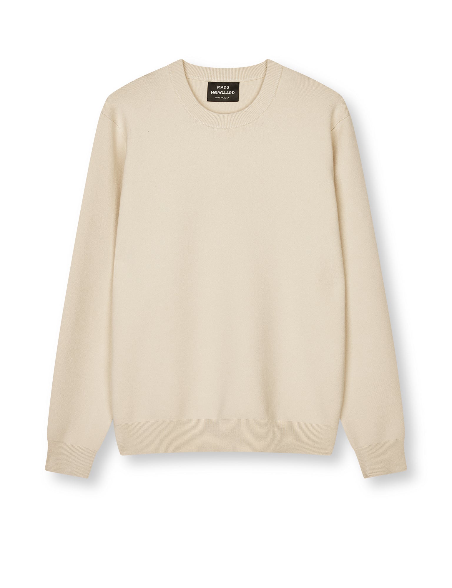 Helt glat og enkel striktrøje med rund hals og strikkede ribkanter.