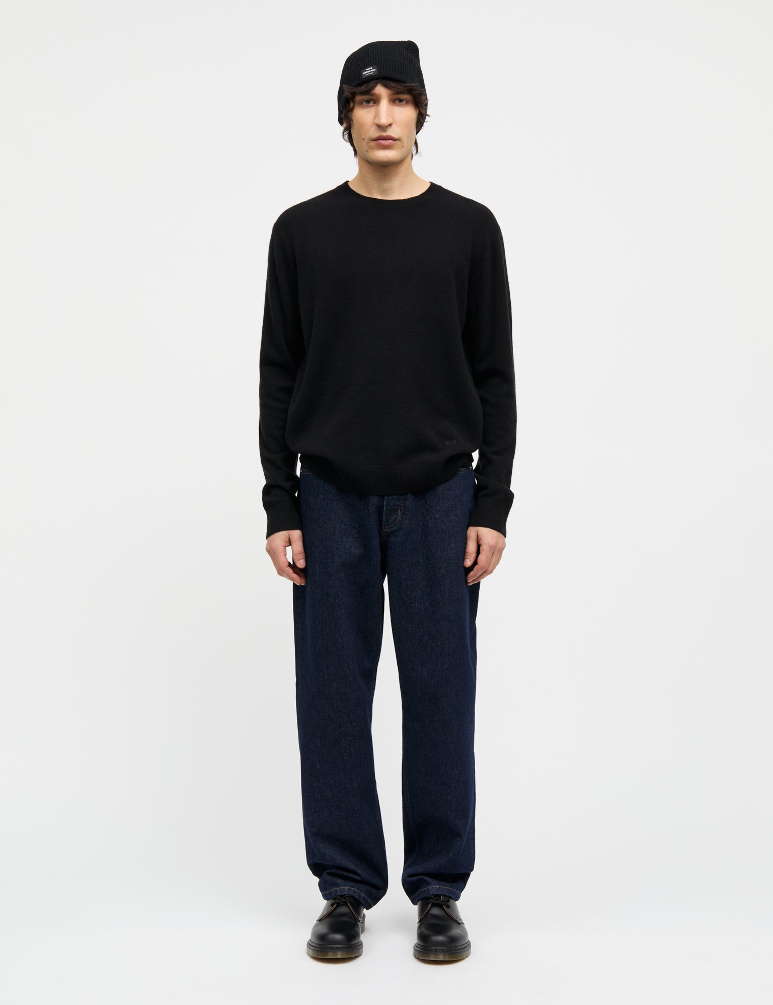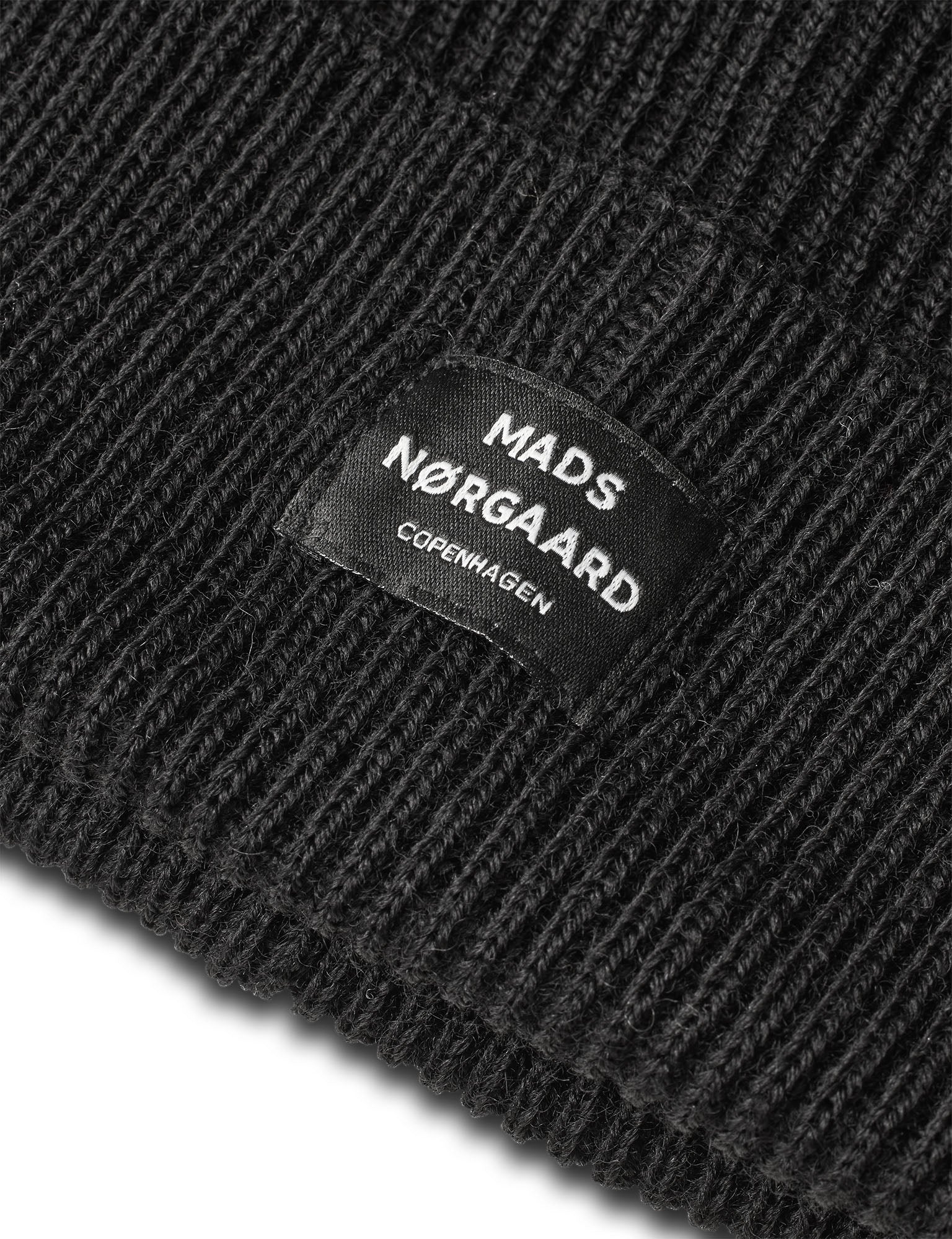 Ribstrikket hue med opsmøg og diskret logolabel.