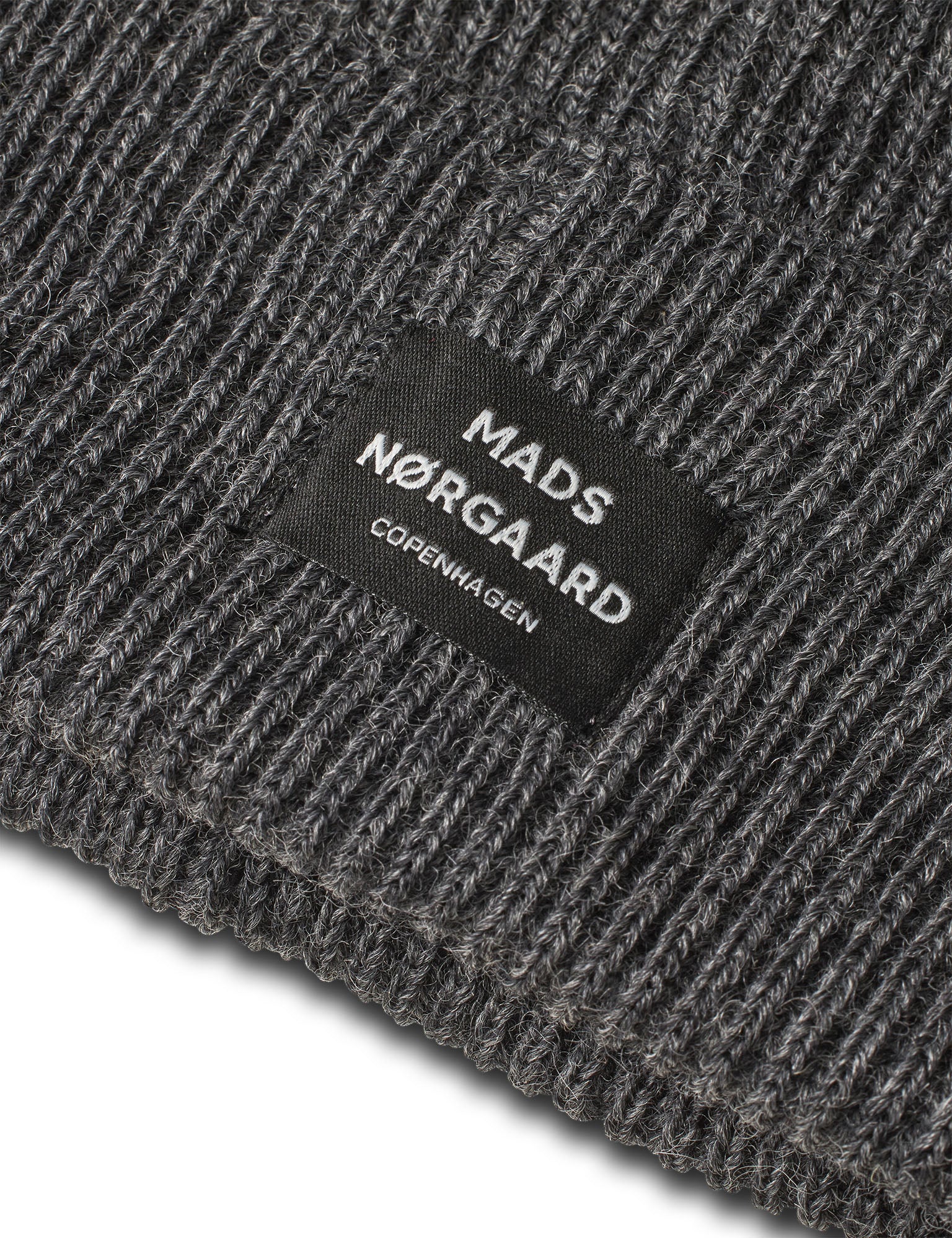 Ribstrikket hue med opsmøg og diskret logolabel.