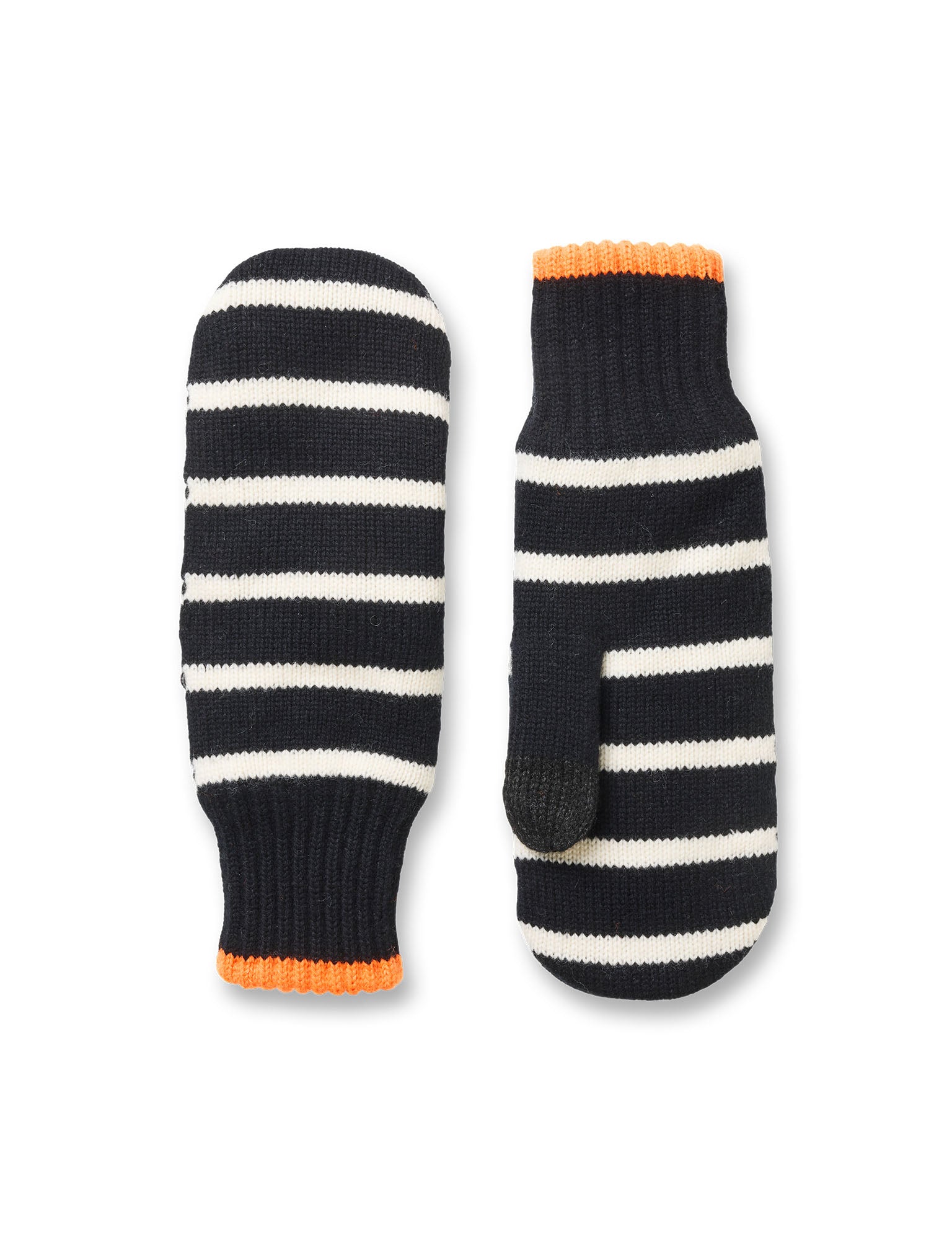 Bløde, glatstrikkede luffer med ribstrikket rib, smalle striber og påsyet logolabel.