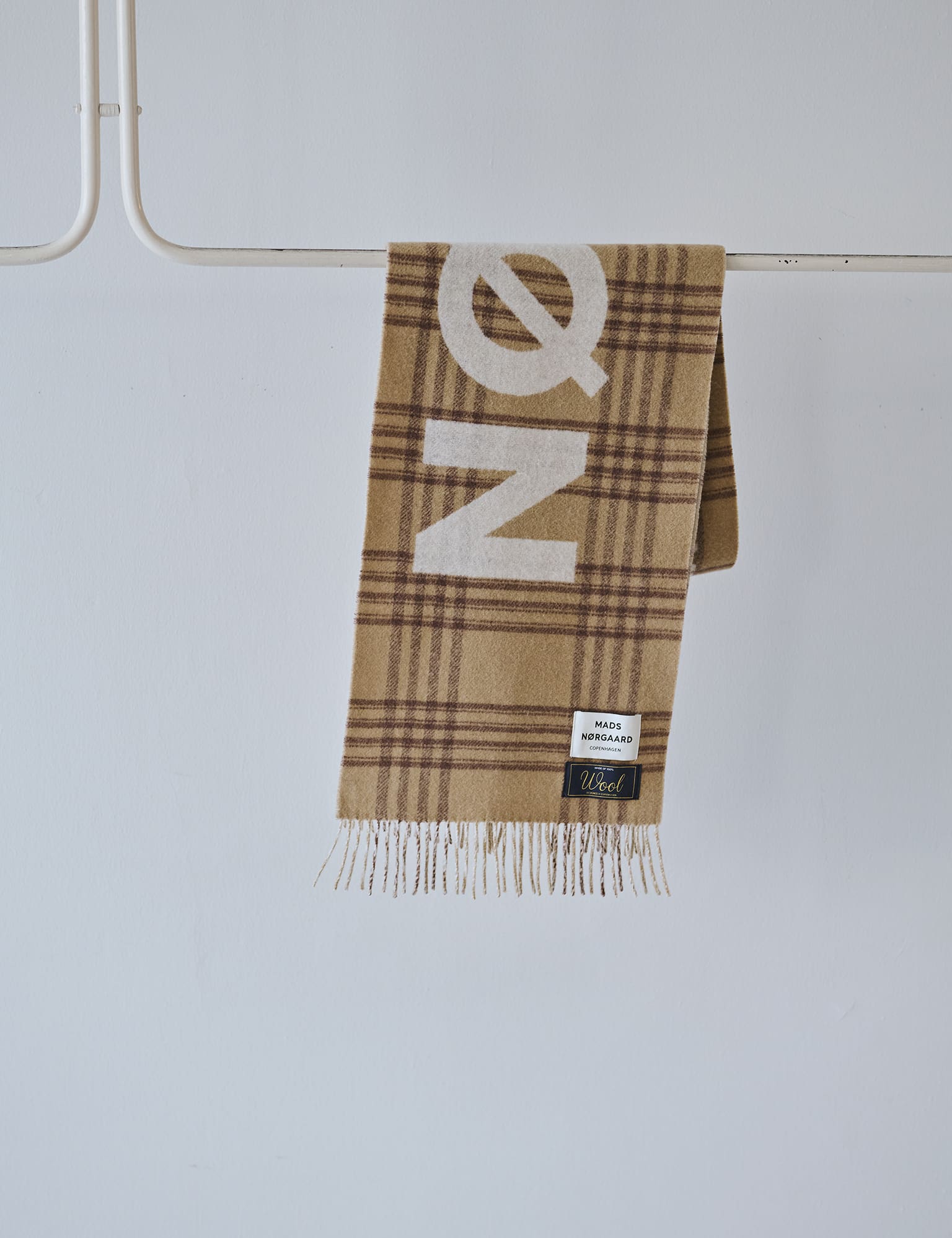 Glat, blødt uldhalstørklæde med frynser i begge ender, logo og logolabel.