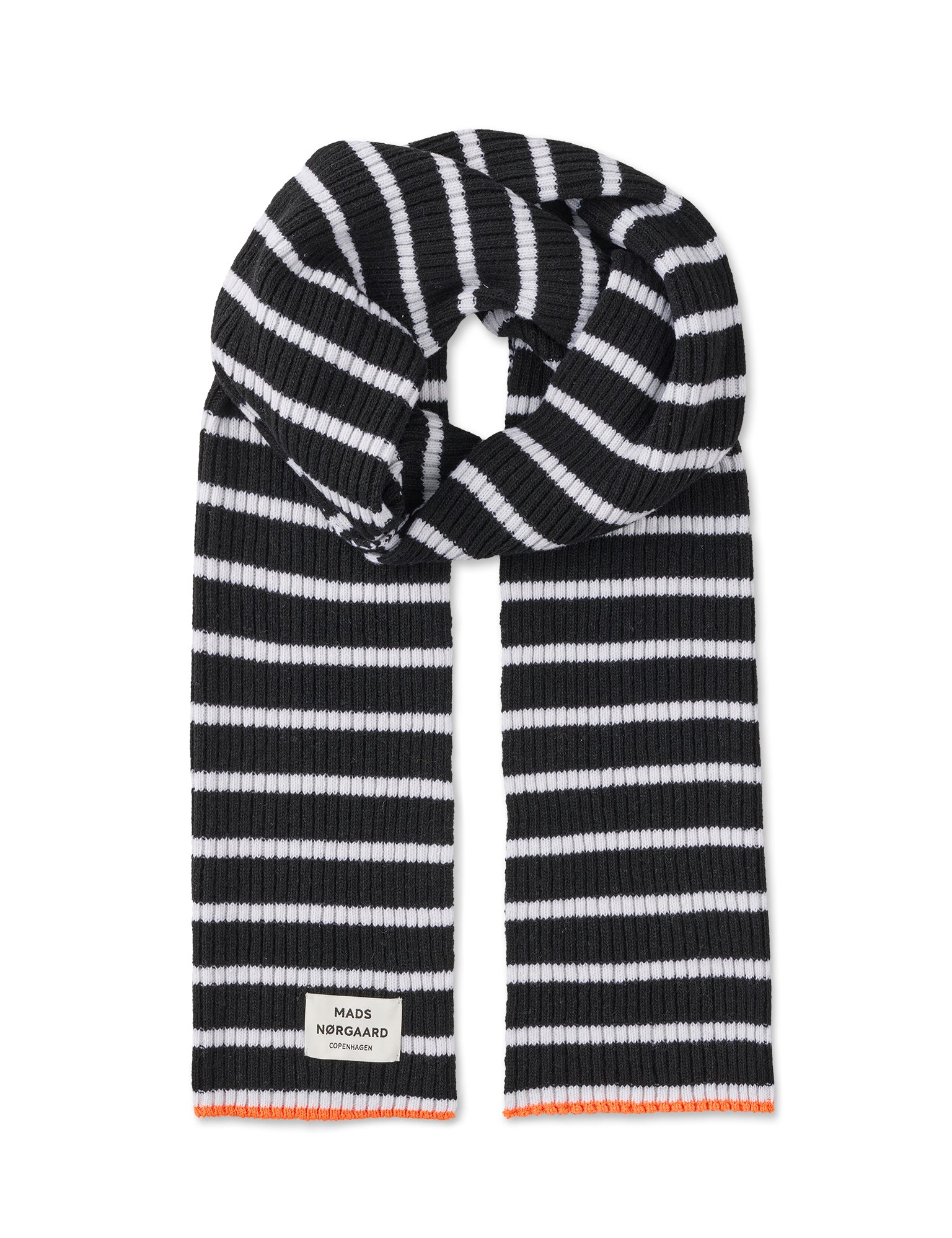 Ribstrikket, uldent og superblødt tørklæde med logolabel og striber.
